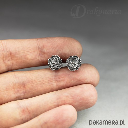 Drobne kolczyki typu sztyfty, zdobione niezwykle szczegółowym motywem kwiatów zaprojektowanym od podstaw przeze mnie. Kolczyki stanowią część kwiatowej kolekcji, będącej hołdem dla pięknych dzieł Matki Natury. Wykonane ze srebra pr. 925, oksydowane dla podkreślenia głębi ornamentów i polerowane. Idealne jako niezobowiązujący dodatek do każdego stroju lub uroczy prezent.