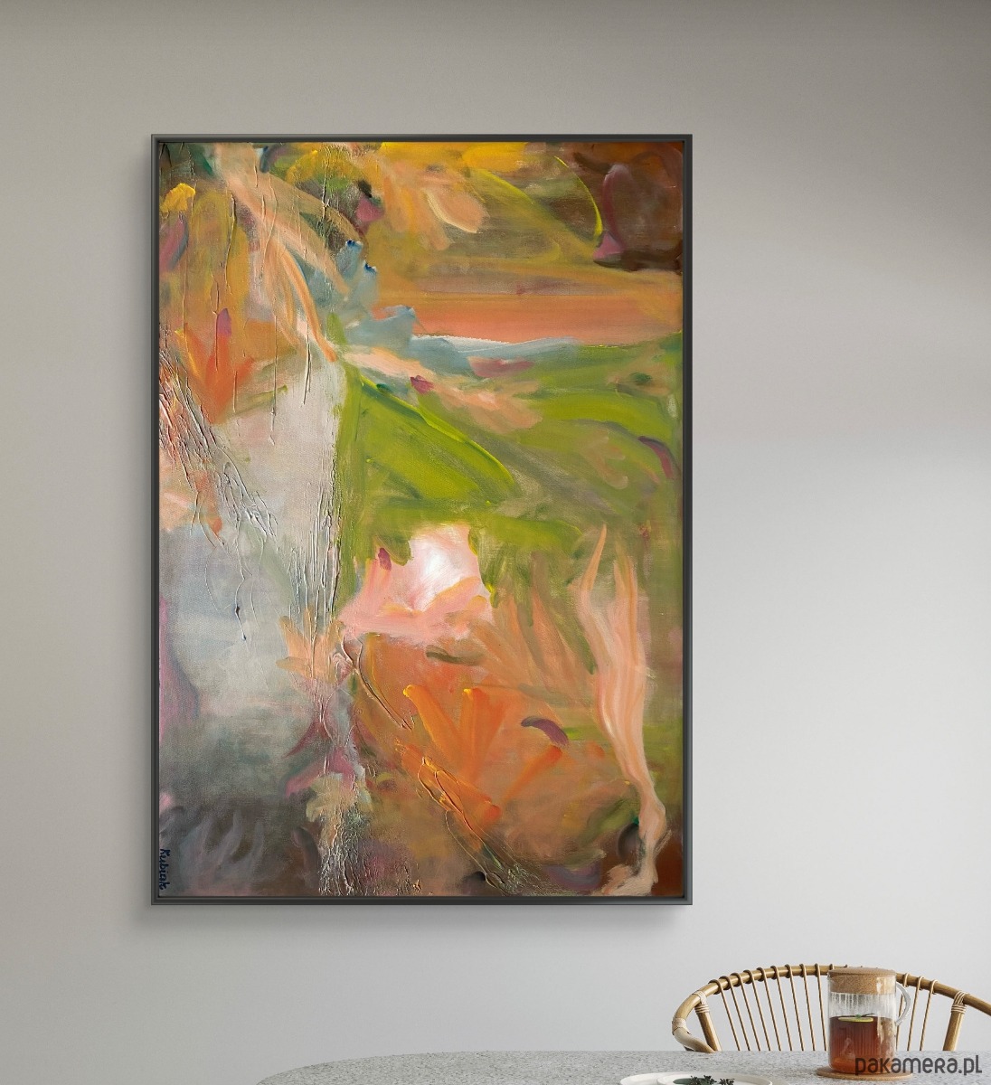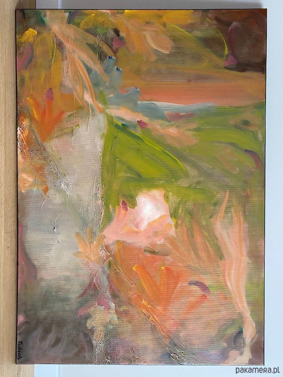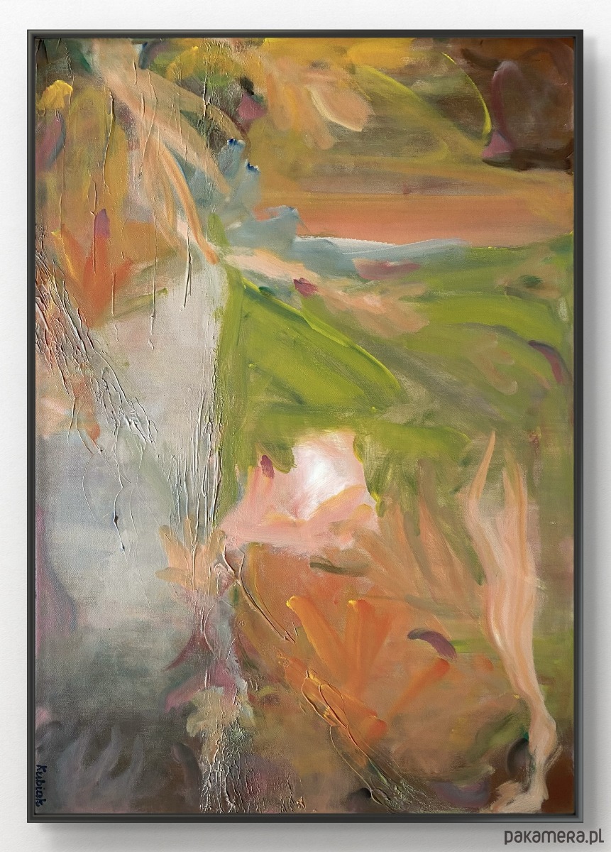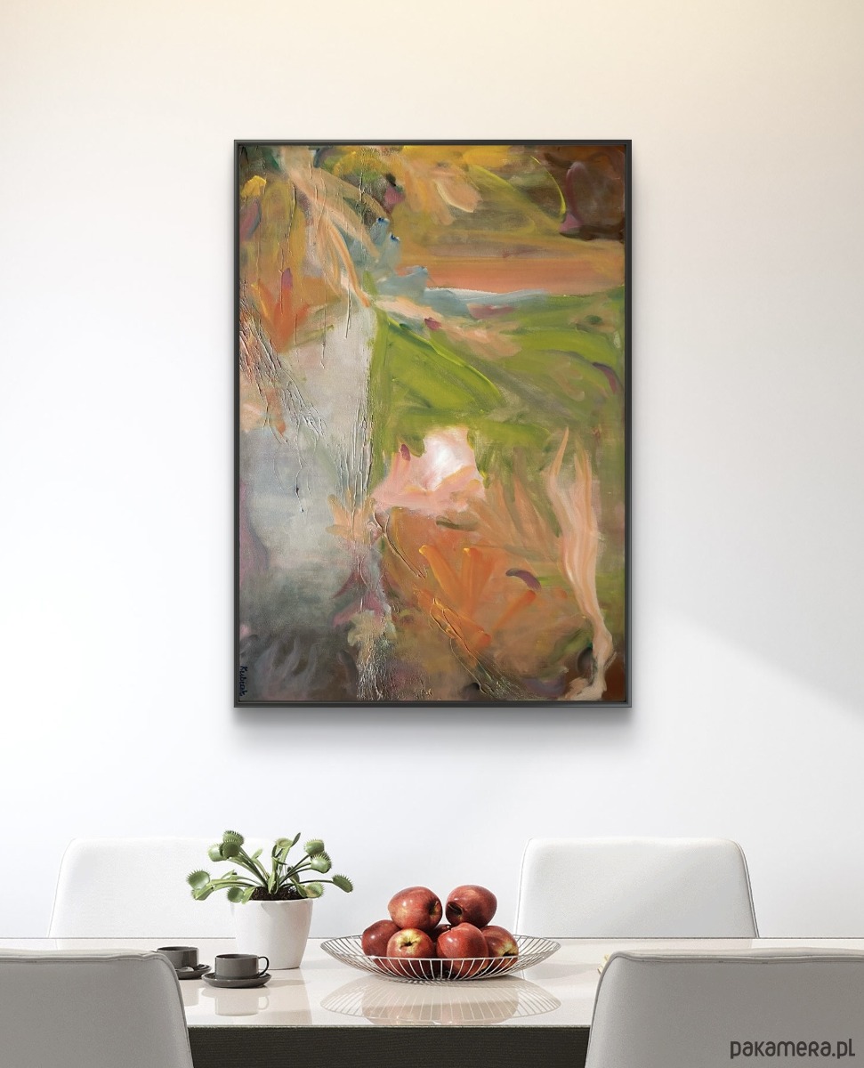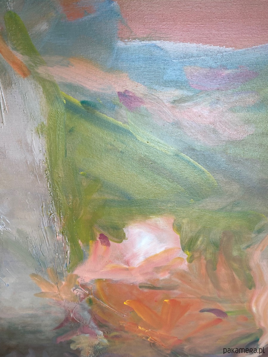 Bardzo duża abstracja na płótnie pt. Ogród w Giverny. Oryginał. Bez ramy, brzegi zamalowane na czarno, nie wymaga oprawy. Widoczna i wyczuwalna struktura.