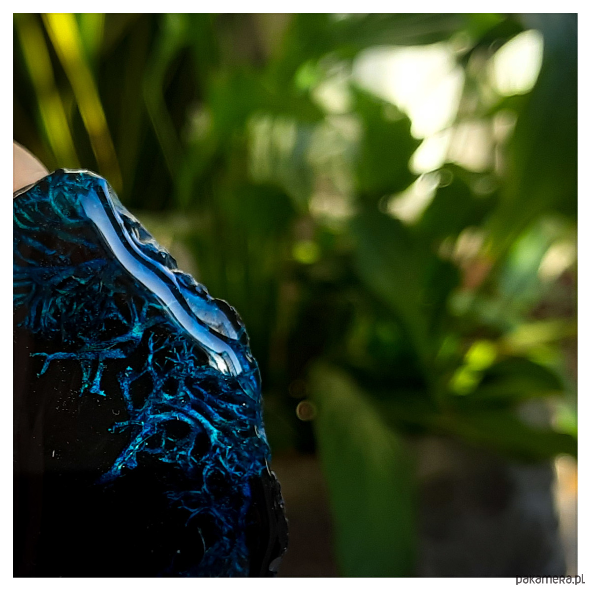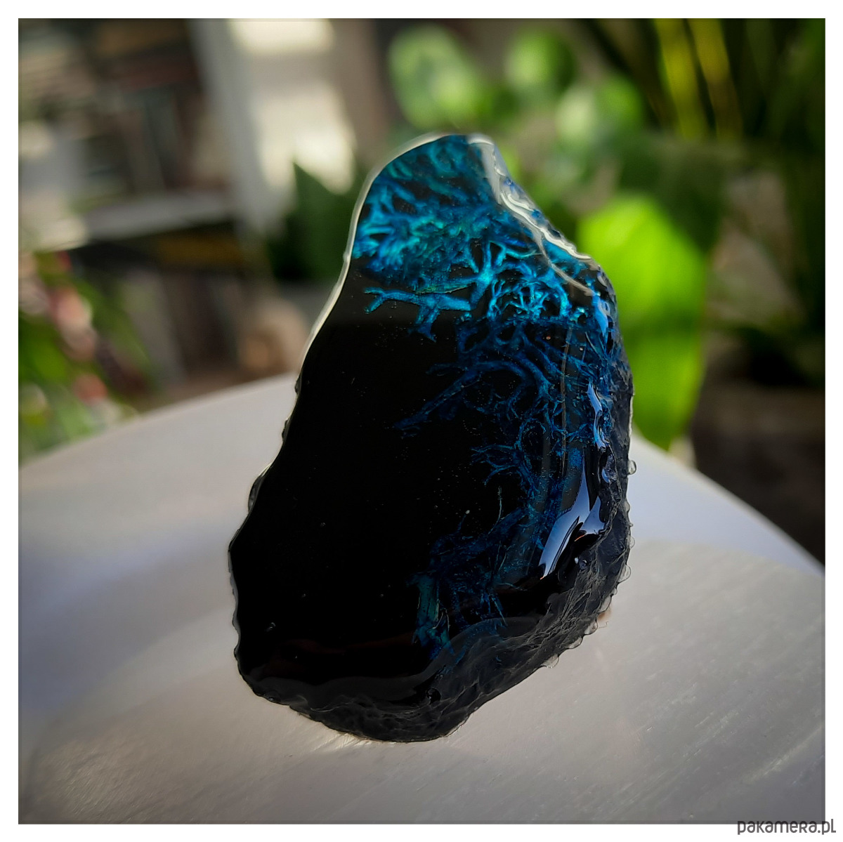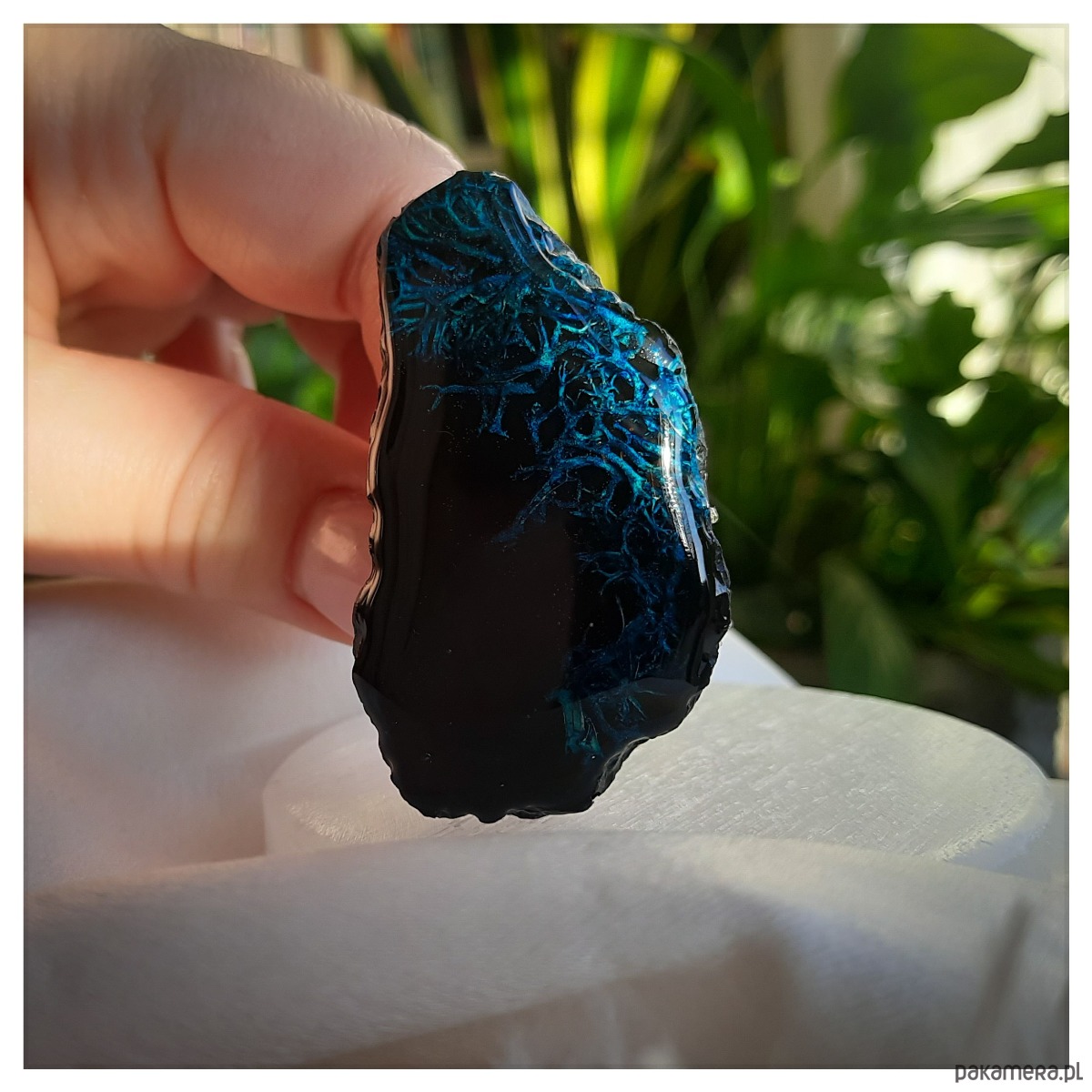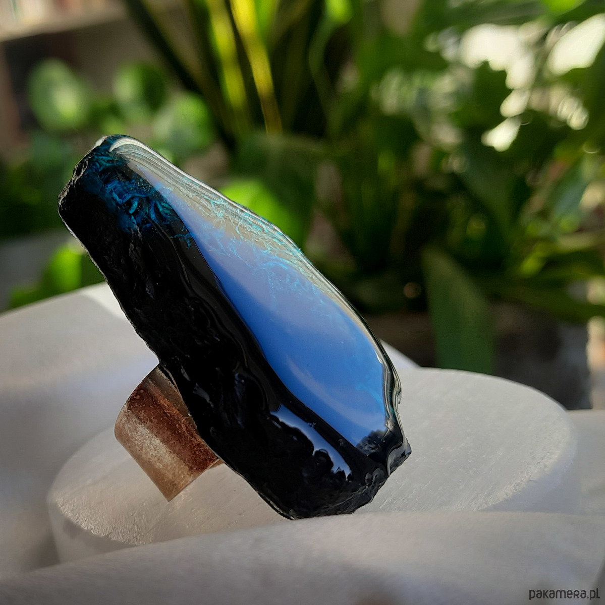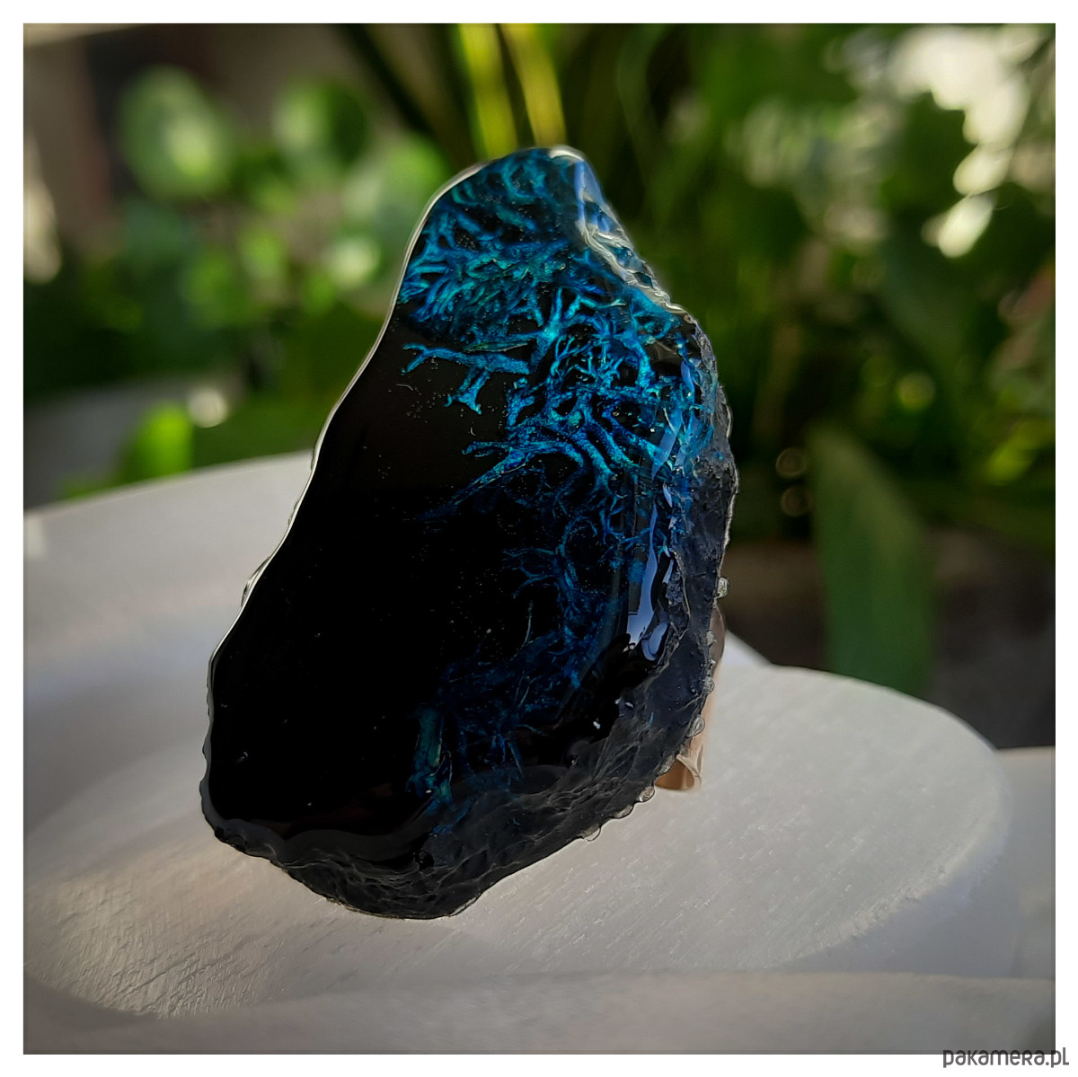 Pierścionek z zatopionym w żywicy epoksydowej mchem.