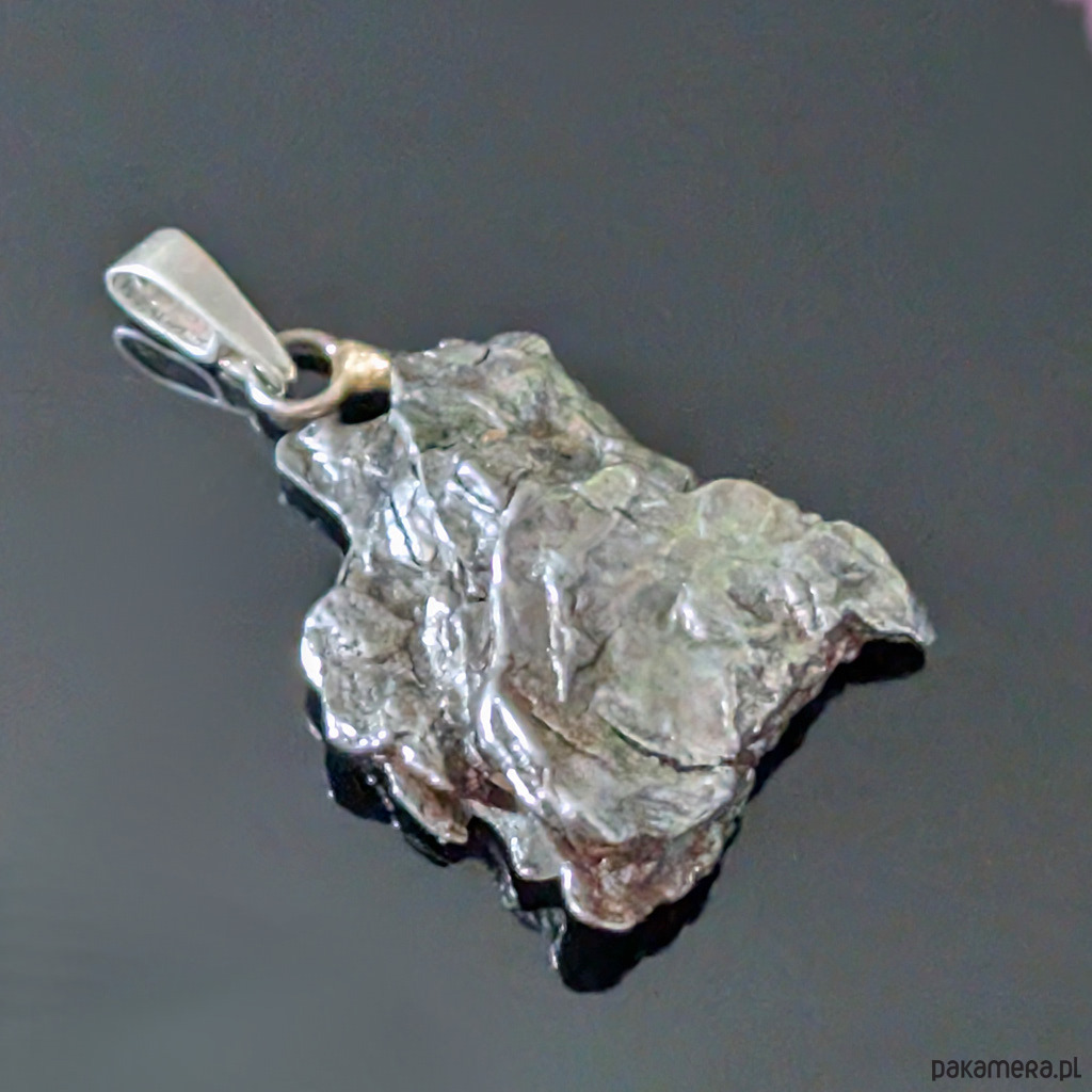 Wisior z okazałym meteorytem żelaznym Campo del Cielo, który znaleziono w 1576 roku w Argentynie. Krawatka srebro 925 Uniwersalny, dla niego lub dla niej. Wymiary 29 x 23 mm. Długość max 37 mm. Waga wisiora 11,5 g. Do meteorytu dołączona zostanie metryka z datą, miejscem spadku i wagą. Wisiorek zostanie zapakowany w ozdobne pudełeczko.