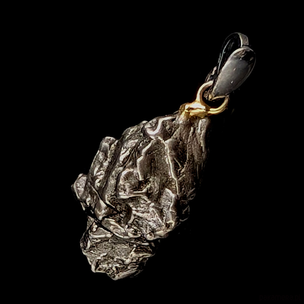 Wisiorek z meteorytem żelaznym Campo del Cielo, który znaleziono w 1576 roku w Argentynie. Krawatka srebro 925, oksydowane. Uniwersalny, dla niego lub dla niej. Wymiary 30 x 18 mm. Długość max 42 mm. Waga wisiora 16 g. Do meteorytu dołączona zostanie metryka z datą, miejscem spadku i wagą. Wisiorek zostanie zapakowany w ozdobne pudełeczko.