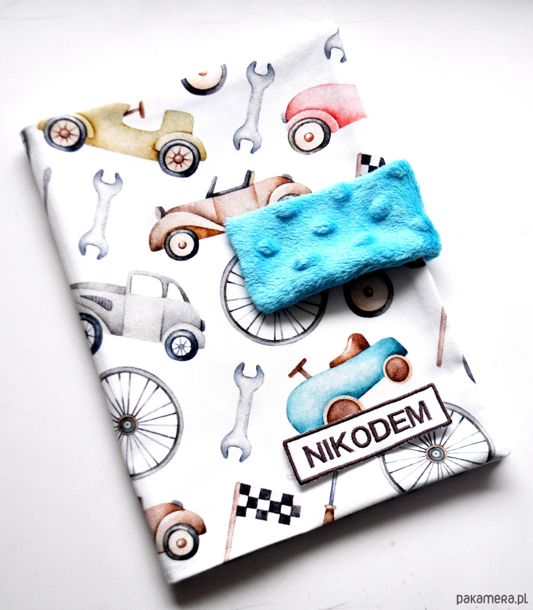 Okładka na książeczkę zdrowia_ z imieniem dziecka _ AUTA