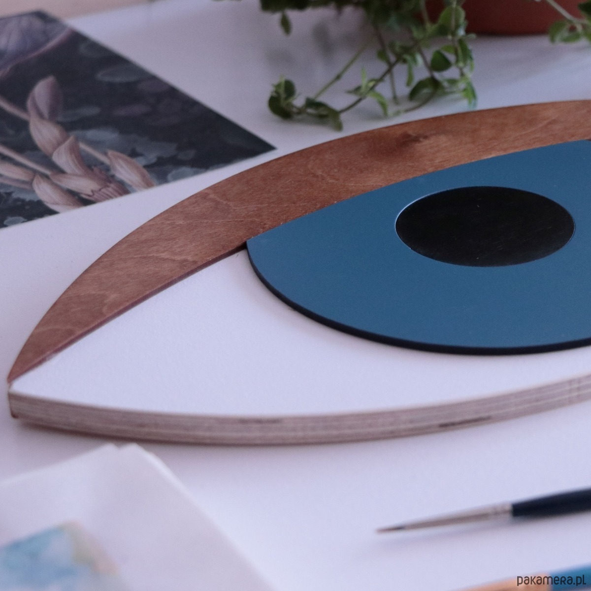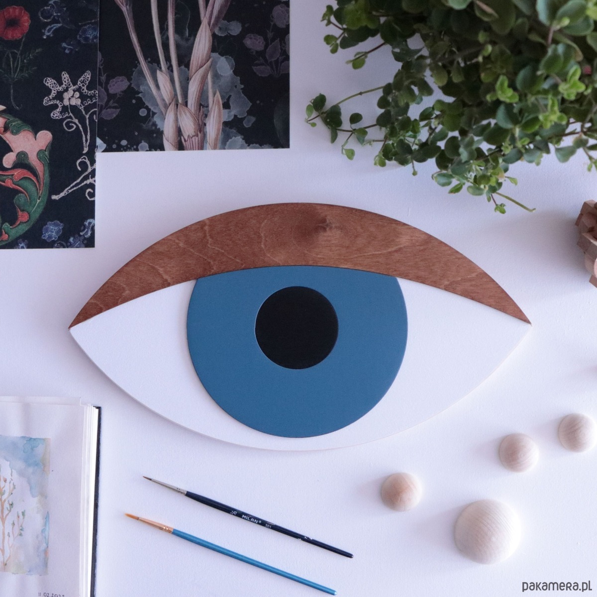 Drewniana, minimalistyczna ozdoba ścienna, która doda wyjątkowości każdemu wnętrzu! Ręcznie wykonane oko, przykuje uwagę każdego, kto na nie spojrzy.