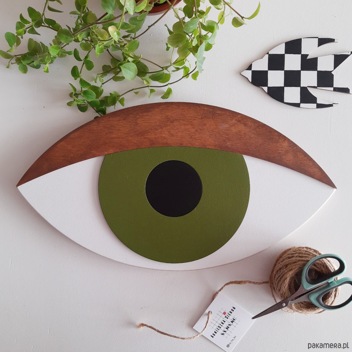 Drewniana, minimalistyczna ozdoba ścienna, która doda wyjątkowości każdemu wnętrzu! Ręcznie wykonane oko, przykuje uwagę każdego, kto na nie spojrzy.