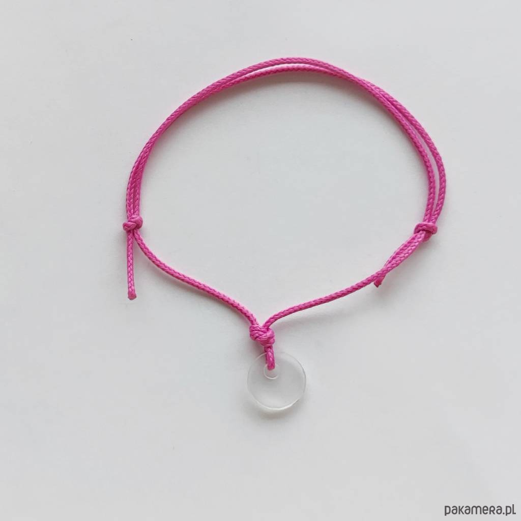 OKRAG bransoletka - uroczy dodatek . Idealna dla kobiet które ceniącą ładną oraz oryginalna biżuterię. Bransoletka wykonana jest z tworzywo sztuczne, ozdobny sznurek. .średnica zawieszki - ok. o,8 cm.
