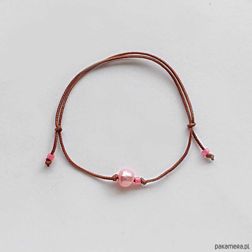 OKRĄG bransoletka – uroczy dodatek . Idealna dla kobiet ceniące ładną oraz oryginalna biżuterii. Bransoletka wykonana jest z, Perła słodkowodna (0k. 0,8 cm), koraliki szklane,ozdobny sznurek. Istnieje możliwość wykonania bransoletki w innych kolorach .