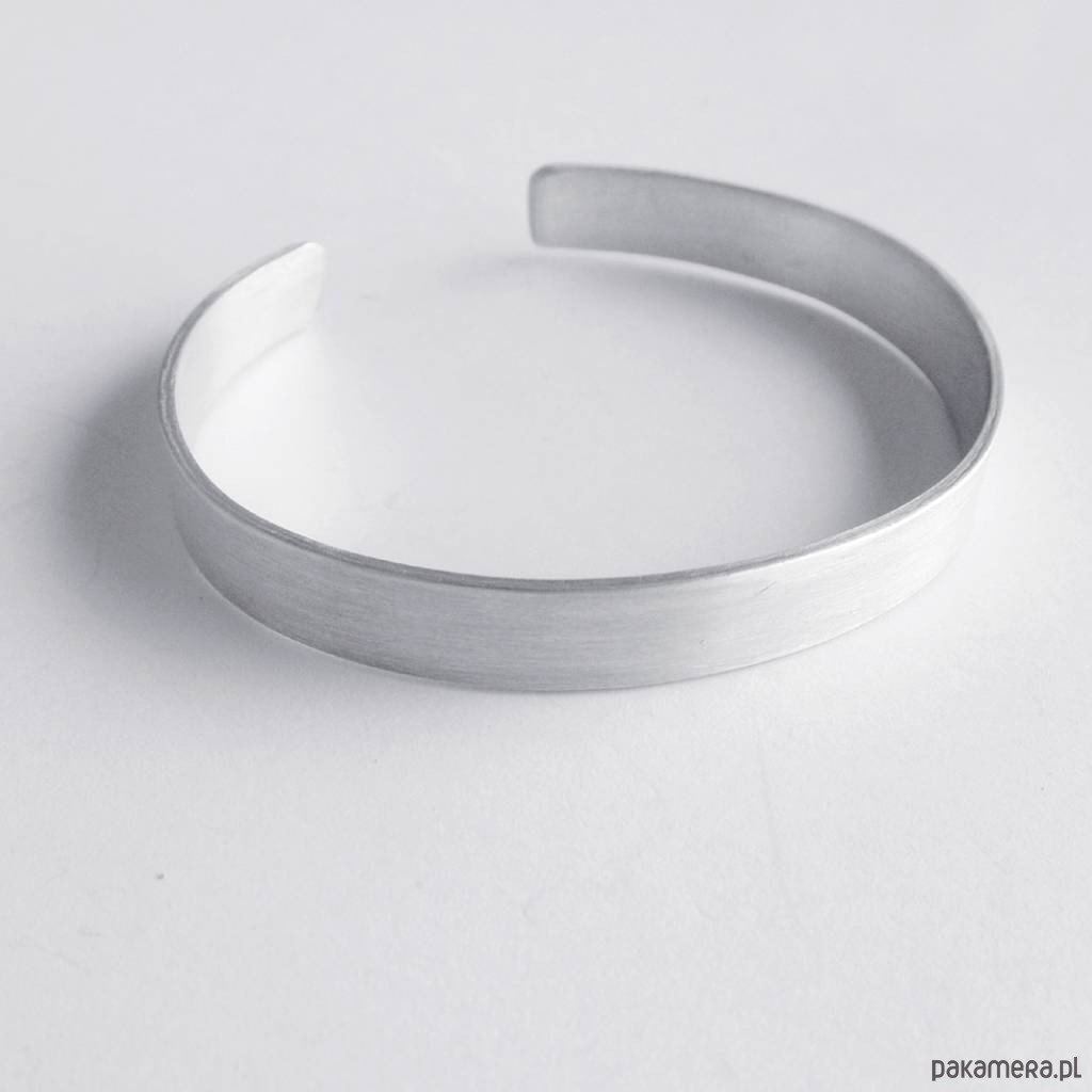 Oryginalność i prostota. OKRĄG - kształt doskonały. Kolekcję cechuje elegancja i prostota jak również ekstrawagancja i indywidualizm. Bransoletka wykonana jest ze srebra. Srebro - próby 0,925, zmatowione. Obwód bransoletki ok. 15,5 cm + przerwa ok. 2,5 cm , szerokość: 0,7 cm.