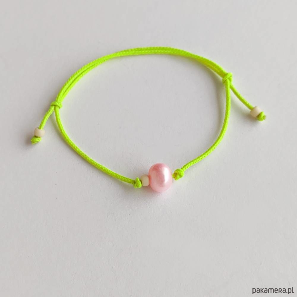 OKRĄG bransoletka – uroczy dodatek . Idealna dla kobiet ceniące ładną oraz oryginalna biżuterii. Bransoletka wykonana jest z, Perła słodkowodna (0k. 0,6 cm) ( kolor różowy), koraliki szklane,ozdobny sznurek. Istnieje możliwość wykonania bransoletki w innych kolorach .