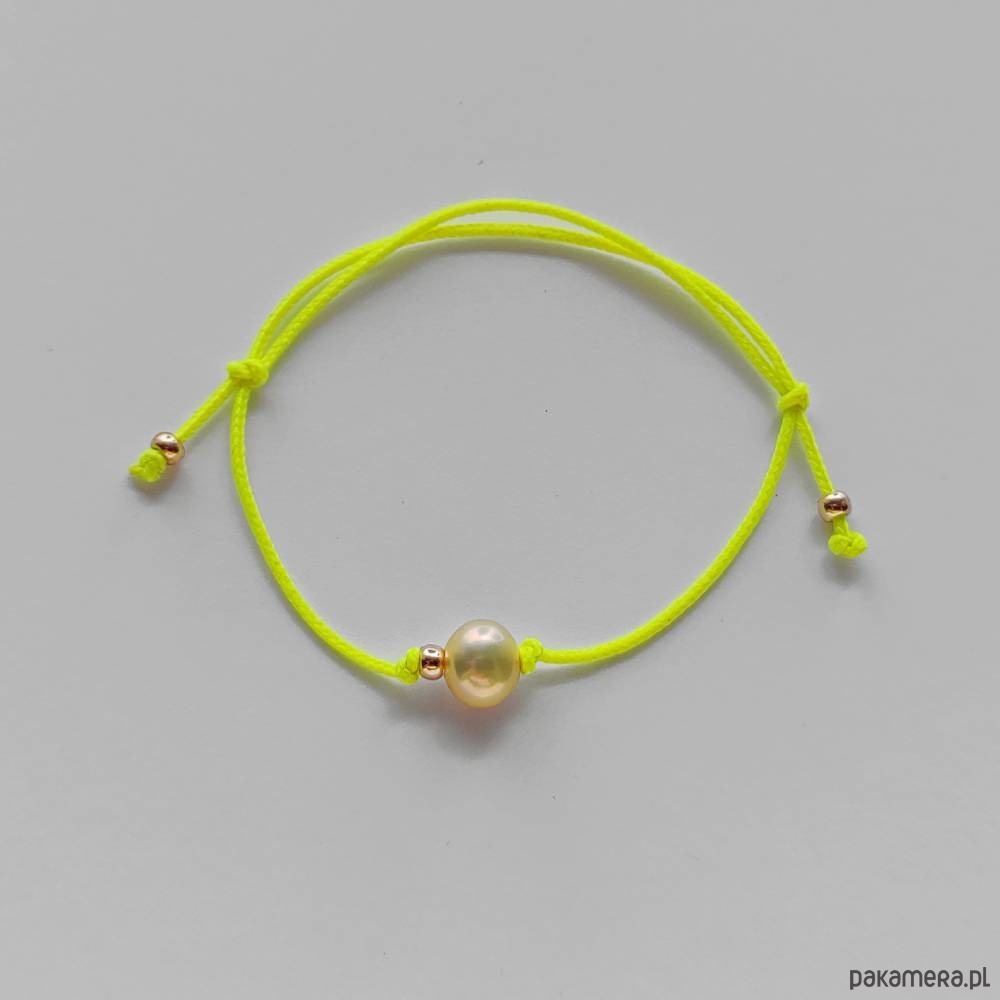 OKRĄG bransoletka – uroczy dodatek . Idealna dla kobiet ceniące ładną oraz oryginalna biżuterii. Bransoletka wykonana jest z, Perła hodowlana (0k. 0,8 cm) kolor żółty, koraliki szklane,ozdobny sznurek. Istnieje możliwość wykonania bransoletki w innych kolorach .