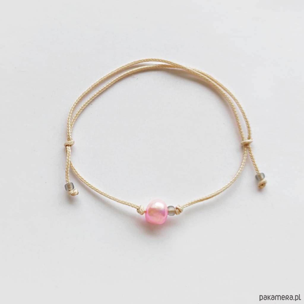 OKRĄG bransoletka – uroczy dodatek OKRĄG - kształt doskonały. Kolekcję cechuje elegancja i prostota jak również ekstrawagancja i indywidualizm. . Idealna dla kobiet ceniące ładną oraz oryginalna biżuterii. Bransoletka wykonana jest z, Perła słodkowodna (0k. 0,8 cm), koraliki szklane, ozdobny sznurek. Istnieje możliwość wykonania bransoletki w innych kolorach .