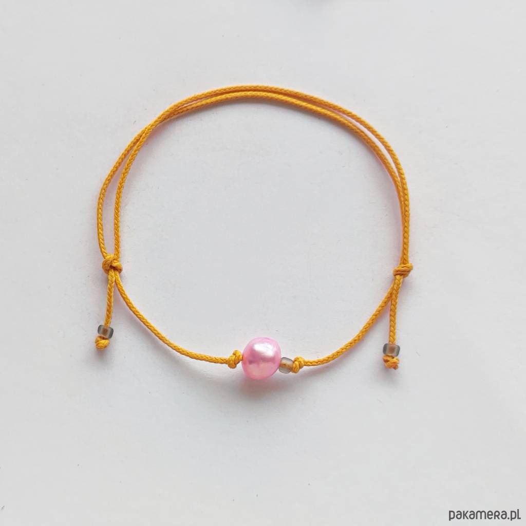 OKRĄG bransoletka – uroczy dodatek . OKRĄG - kształt doskonały. Kolekcję cechuje elegancja i prostota jak również ekstrawagancja i indywidualizm. Idealna dla kobiet ceniące ładną oraz oryginalna biżuterii. Bransoletka wykonana jest z, Perła słodkowodna (0k. 0,8 cm), koraliki szklane, ozdobny sznurek. Istnieje możliwość wykonania bransoletki w innych kolorach .