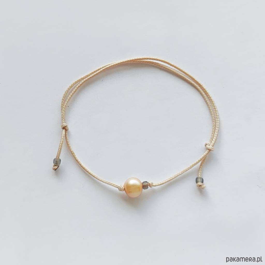 OKRĄG bransoletka – uroczy dodatek . Idealna dla kobiet ceniące ładną oraz oryginalna biżuterii. Bransoletka wykonana jest z, Perła hodowlana (0k. 0,8 cm) kolor żółty, koraliki szklane, ozdobny sznurek. Istnieje możliwość wykonania bransoletki w innych kolorach sznurka.