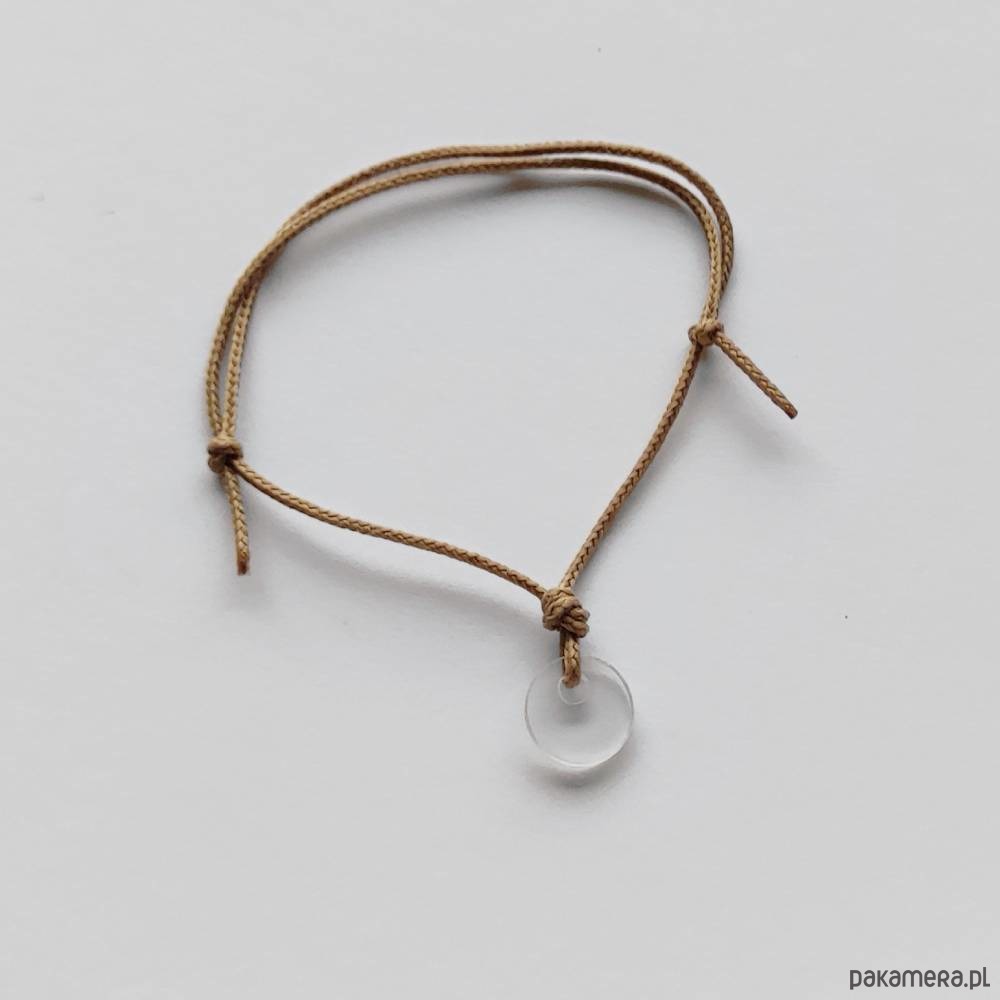 OKRAG bransoletka - uroczy dodatek . Idealna dla kobiet które ceniącą ładną oraz oryginalna biżuterię. Bransoletka wykonana jest z tworzywo sztuczne, ozdobny sznurek. .średnica zawieszki - ok. o,8 cm. Bransoletka jest regulowana. Istniej możliwość wykonania bransoletki w innym kolorze sznurka.