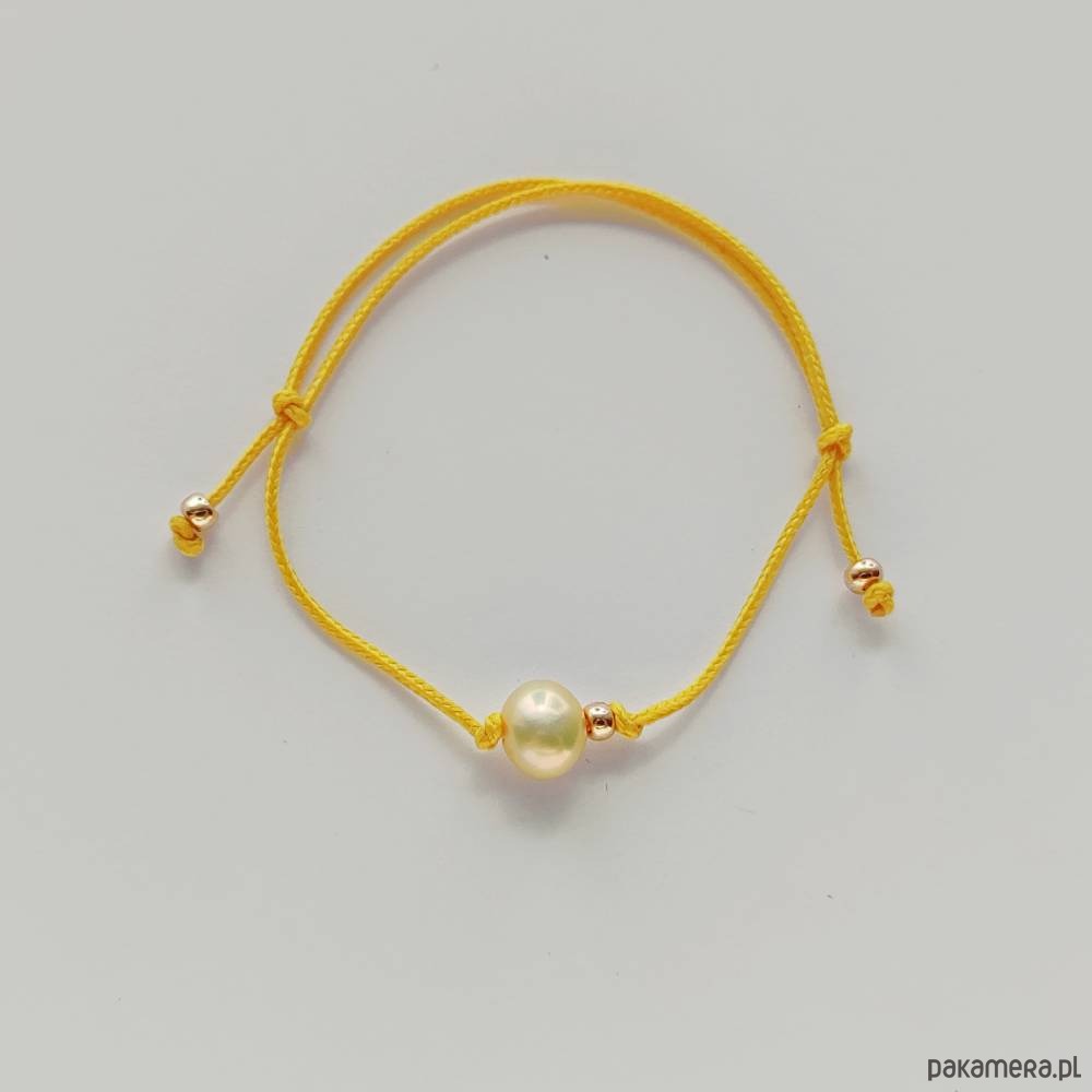 OKRĄG bransoletka – uroczy dodatek . Idealna dla kobiet ceniące ładną oraz oryginalna biżuterii. Bransoletka wykonana jest z, Perła hodowlana (0k. 0,8 cm) kolor żółty, koraliki szklane, ozdobny sznurek. Istnieje możliwość wykonania bransoletki w innych kolorach . Bransoletka jest regulowana.