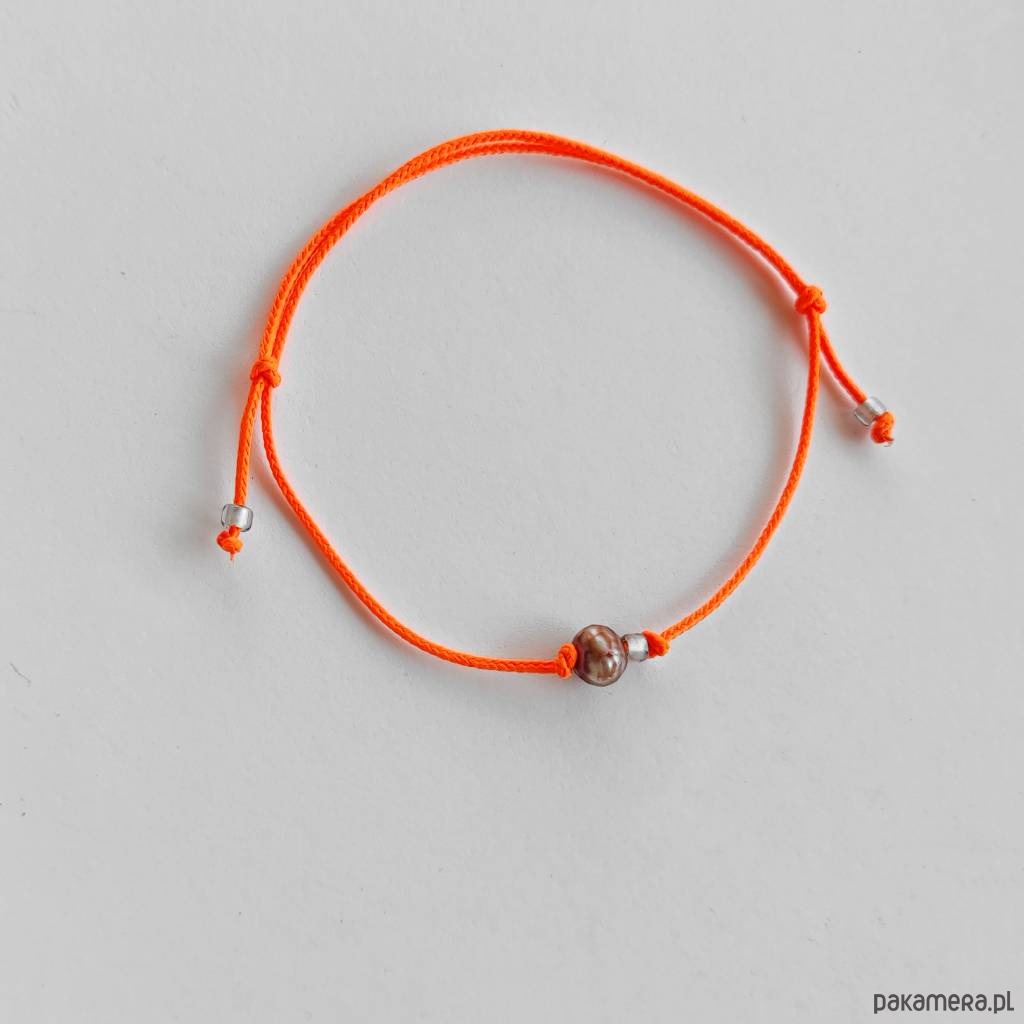 OKRĄG bransoletka – uroczy dodatek . Idealna dla kobiet ceniące ładną oraz oryginalna biżuterii. Bransoletka wykonana jest z, Perła słodkowodna (0k. 0,8 cm), koraliki szklane, ozdobny sznurek. Istnieje możliwość wykonania bransoletki w innych kolorach sznurka. Bransoletka jest regulowana.
