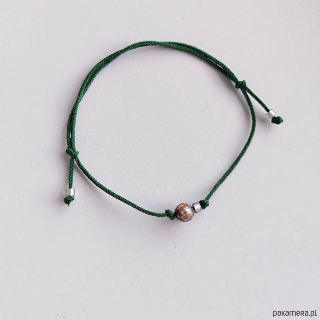 OKRĄG bransoletka – uroczy dodatek . Idealna dla kobiet ceniące ładną oraz oryginalna biżuterii. Bransoletka wykonana jest z, Perła słodkowodna (0k. 0,8 cm), koraliki szklane, ozdobny sznurek. Istnieje możliwość wykonania bransoletki w innych kolorach sznurka. Bransoletka jest regulowana.