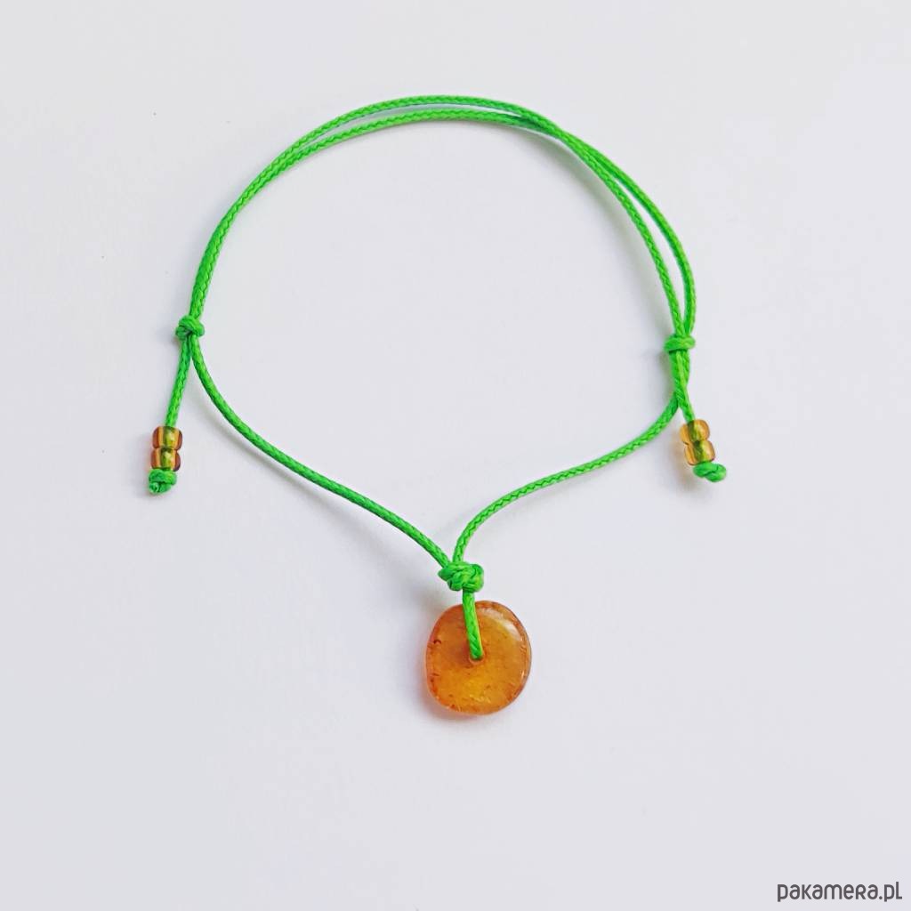 OKRĄG bransoletka - uroczy dodatek . Idealna dla kobiet ceniące ładną oraz oryginalna biżuterii. Bransoletka wykonana jest z :Bursztyn wiercony bursztyn wiercony (Kolor: Słomkowy plastry, wielkość 12 mm),szklane koraliki, ozdobny sznurek. Istnieje możliwość wykonania bransoletki w innych kolorach sznurka.