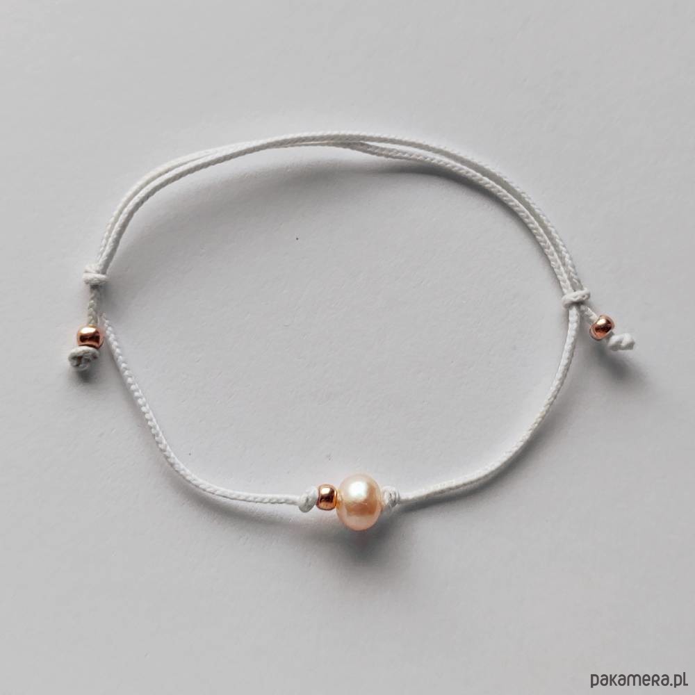 OKRĄG bransoletka – uroczy dodatek . Idealna dla kobiet ceniące ładną oraz oryginalna biżuterii. Bransoletka wykonana jest z, Perła słodkowodna (0k. 0,6 cm), koraliki szklane, ozdobny sznurek. Istnieje możliwość wykonania bransoletki w innych kolorach sznurka. Bransoletka jest regulowana.