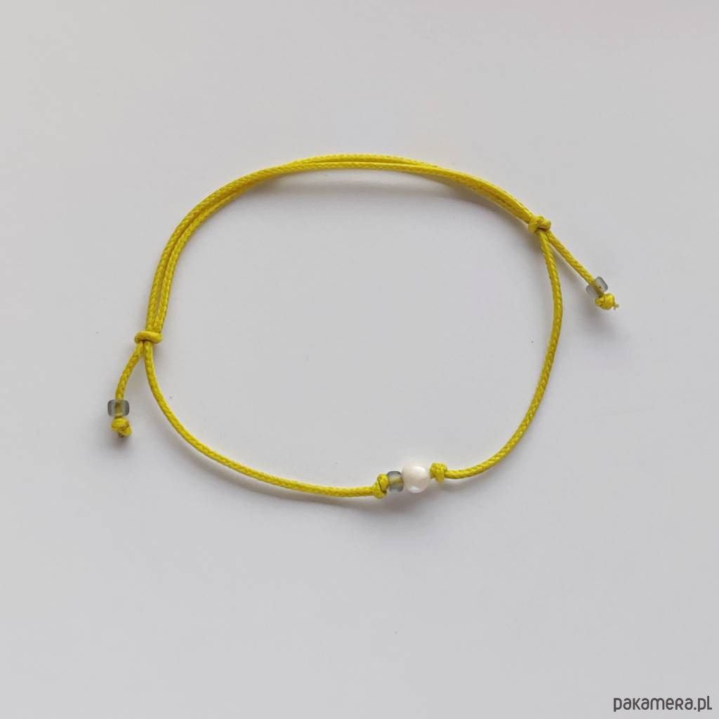 OKRĄG bransoletka – uroczy dodatek . Idealna dla kobiet ceniące ładną oraz oryginalna biżuterii. Bransoletka wykonana jest z, Perła słodkowodna srebrna oponka 5x3mm , koraliki szklane, ozdobny sznurek. Istnieje możliwość wykonania bransoletki w innych kolorach. Bransoletka jest regulowana.