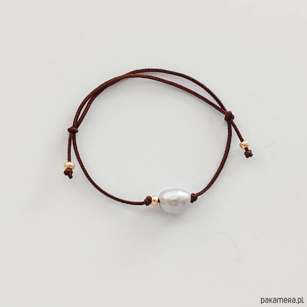 OKRĄG bransoletka – uroczy dodatek . Idealna dla kobiet ceniące ładną oraz oryginalna biżuterii. Bransoletka wykonana jest z, Perła słodkowodna szara (0k. 0,8 cm), koraliki szklane, ozdobny sznurek. Istnieje możliwość wykonania bransoletki w innych kolorach sznurka. Bransoletka jest regulowana.