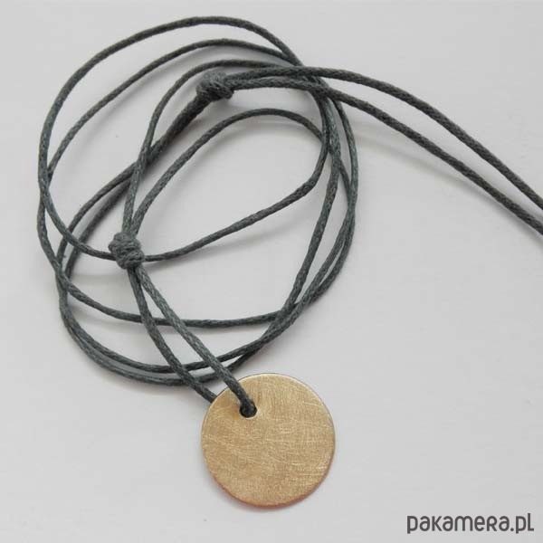 Oryginalność i prostota. Kolekcję cechuje elegancja i prostota jak również ekstrawagancja i indywidualizm. Wisiorek wykonany z: brąz, ozdobny sznurek. Średnica zawieszki 1,8 cm. Długość sznurka- ok. 60 cm Termin realizacji zamówienia to 1-2 dni