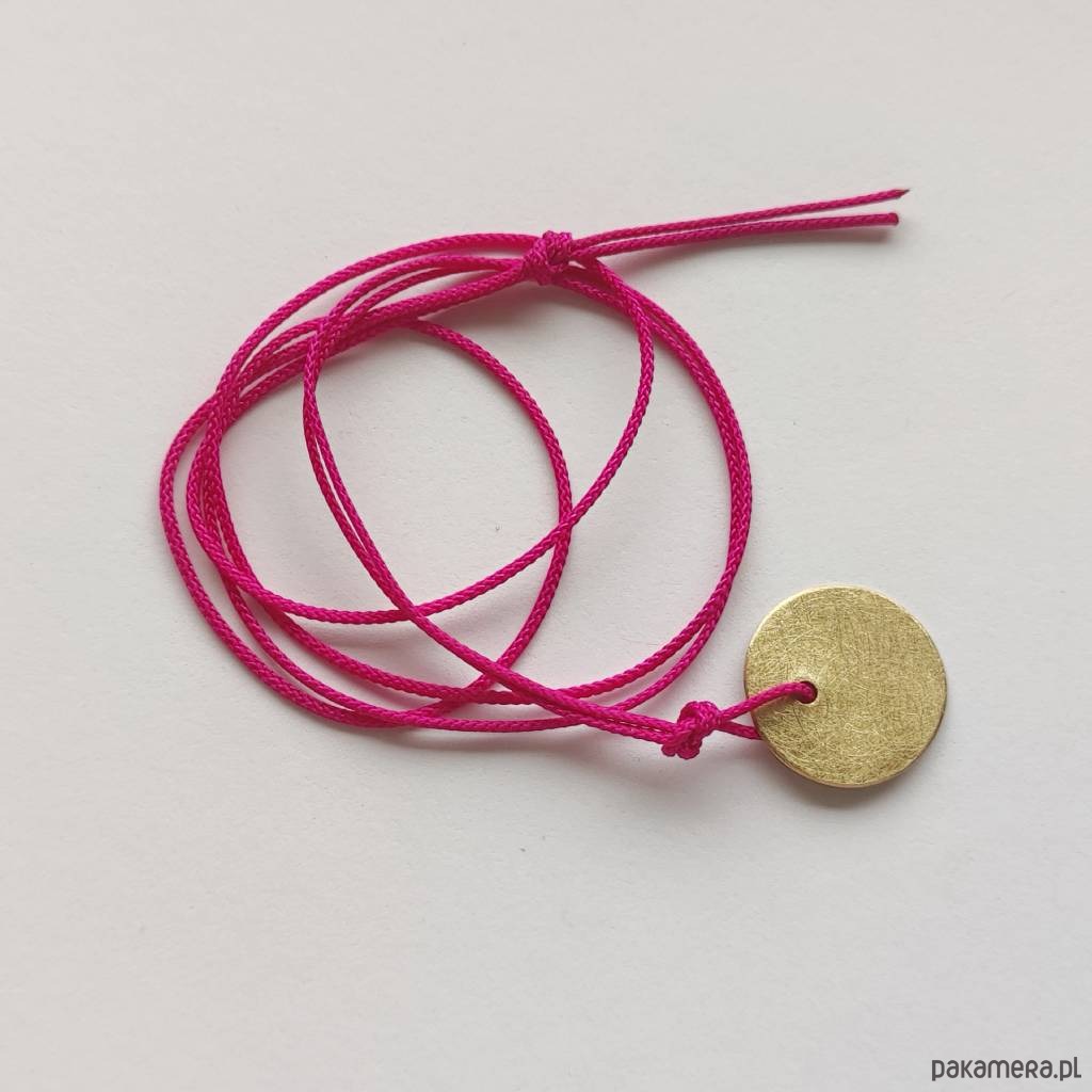 Oryginalność i prostota. Kolekcję cechuje elegancja i prostota jak również ekstrawagancja i indywidualizm. Wisiorek wykonany z: mosiądz ozdobny sznurek. Średnica zawieszki 1,8 cm. Długość sznurka- ok. 60 cm