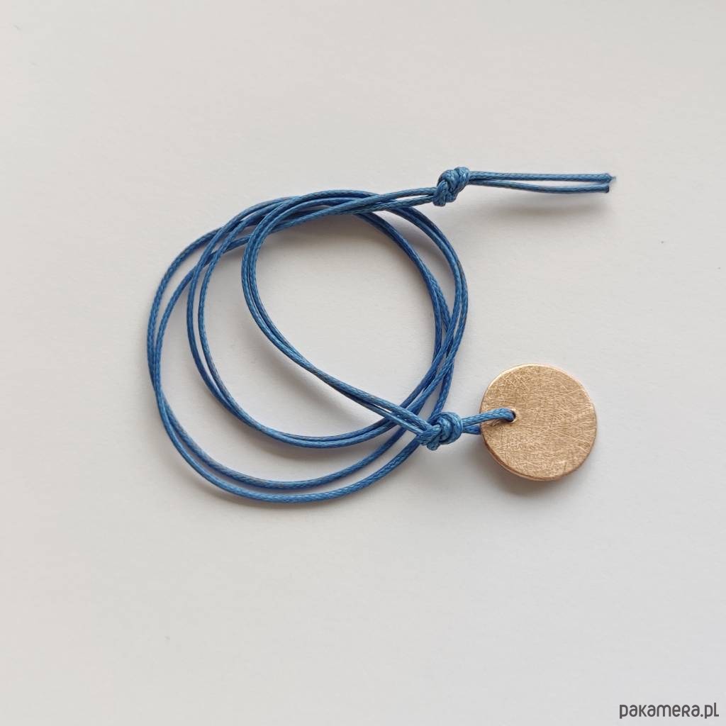 Oryginalność i prostota. Kolekcję cechuje elegancja i prostota jak również ekstrawagancja i indywidualizm. Wisiorek wykonany z: brąz, ozdobny sznurek. Średnica zawieszki 1,8 cm. Długość sznurka- ok. 60 cm Termin realizacji zamówienia to 1-2 dni