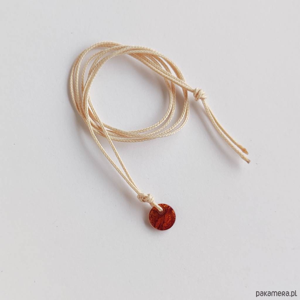 OKRĄG wisiorek – uroczy dodatek . Idealna dla kobiet które cenią ładną oraz oryginalna biżuterii. Wisiorek wykonany jest z: Bursztyn wiercony plastry kolor mieszany wielkość 8 mm, ozdobny sznurek. Subtelny wisiorek do codziennych stylizacji. Przyciąga uwagę oraz dodaje uroku każdej stylizacji.