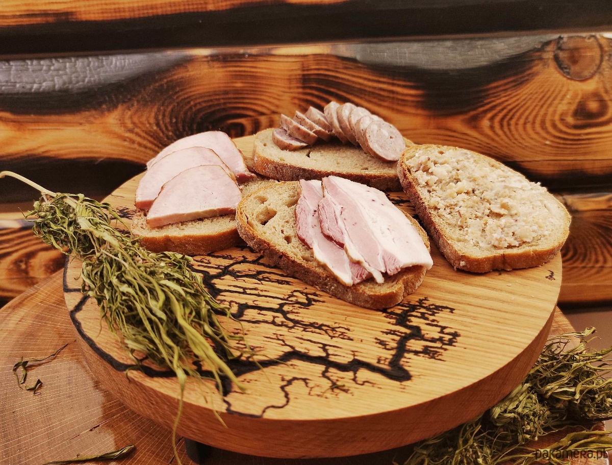 Okrągła dębowa deska do potraw, serów wypalana - wzór Lichtenbegra, wzór 4