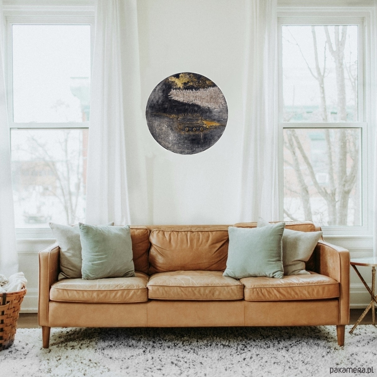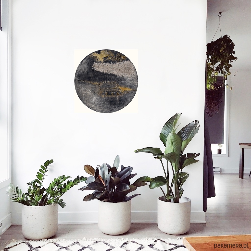 Okrągła dekoracja obraz abstrakcyjny ręcznie malowany technika mieszana /3/