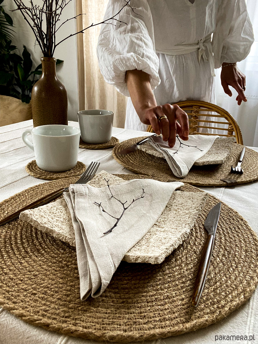 Naturalna, duża podkładka z juty idealnie sprawdzi sie jako dekoracja stołu na Twoim rodzinnym obiedzie, wieczornej kolacji czy przyjęciu w ogrodzie.