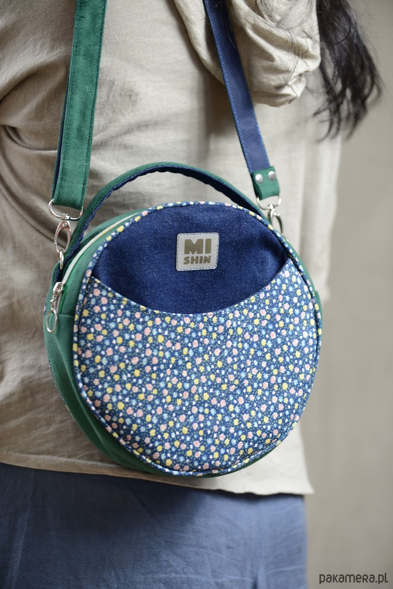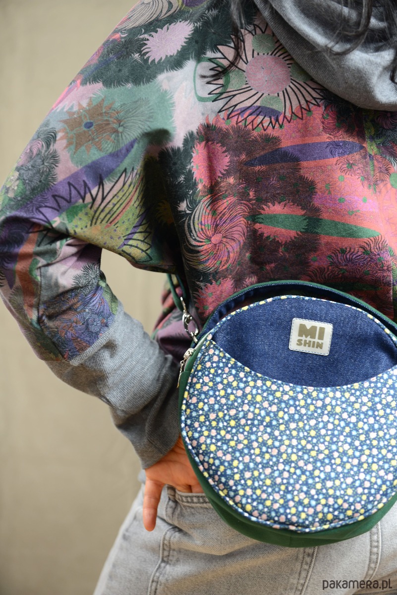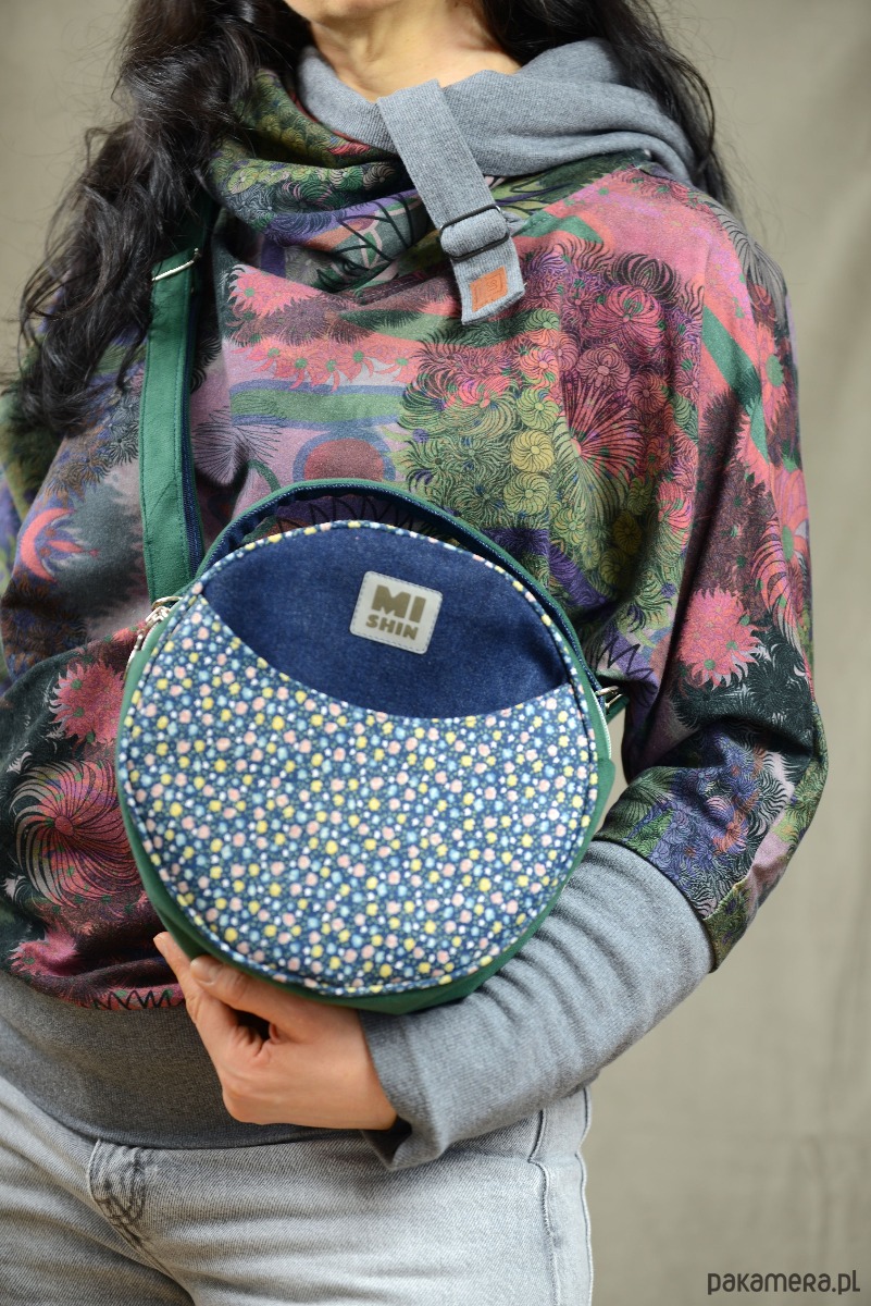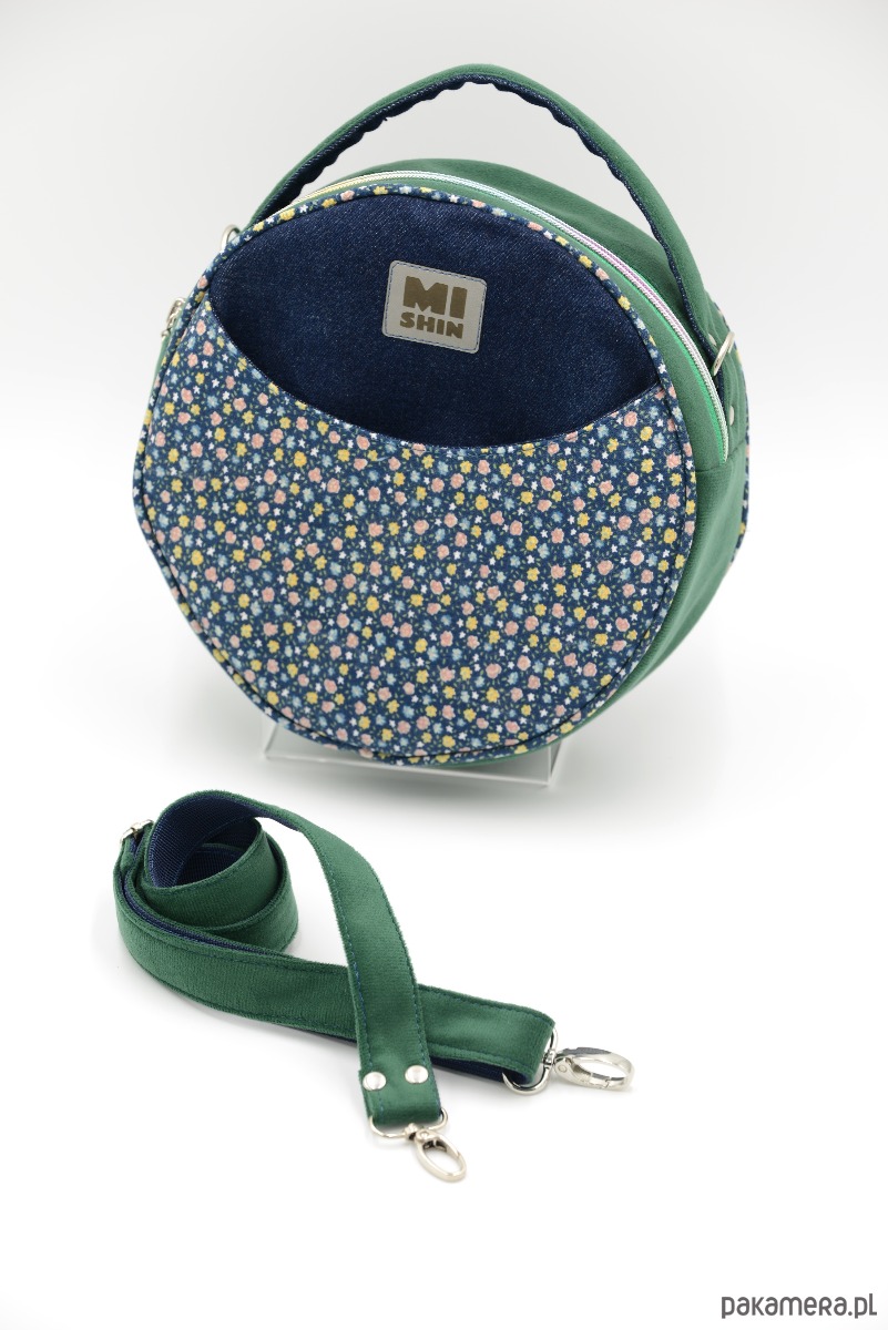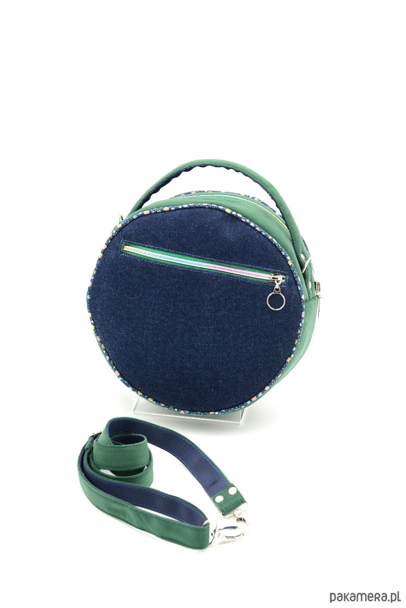 Okrągła Torebka okrąglaczek butelkowa zieleń jeans kwiaty