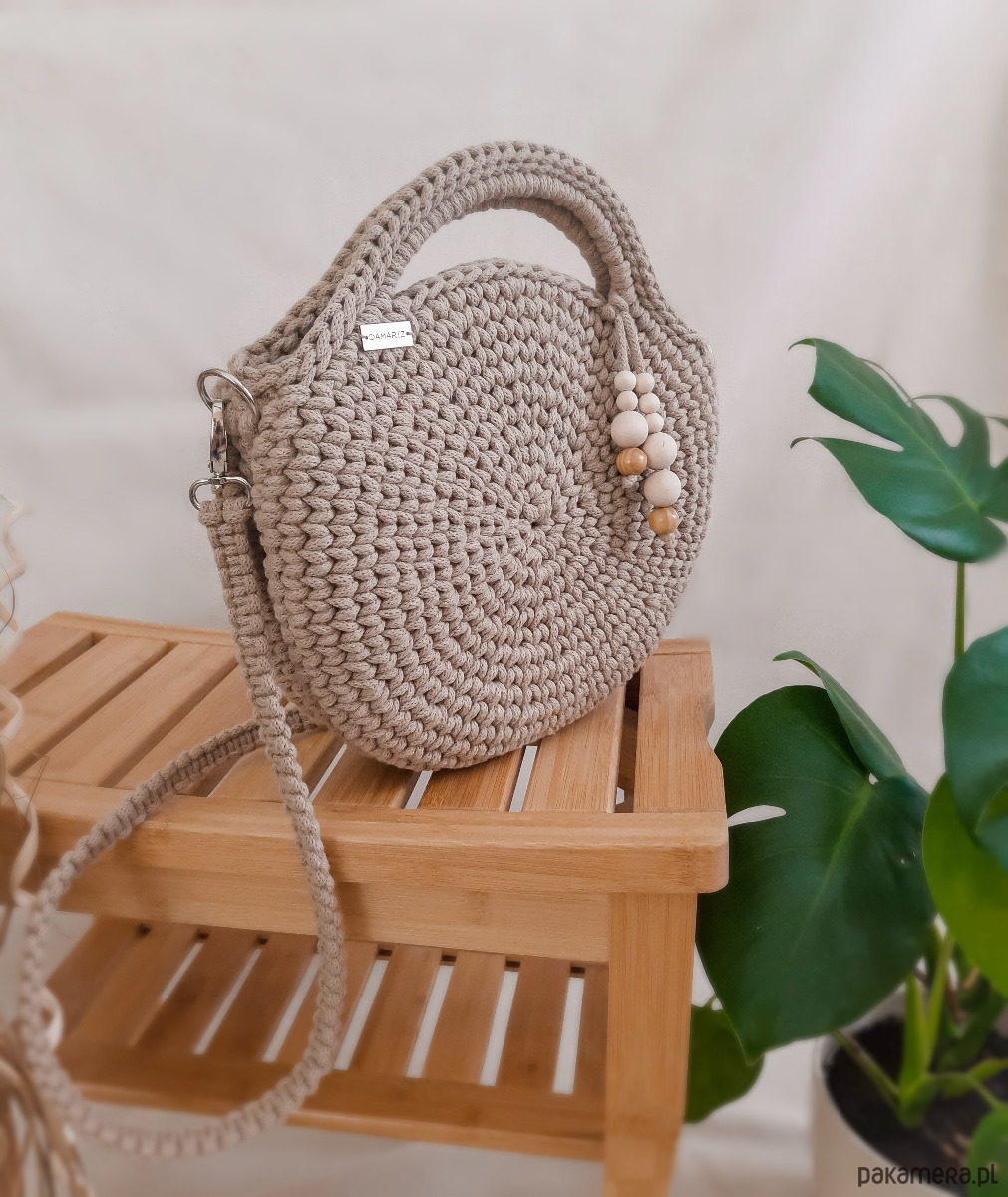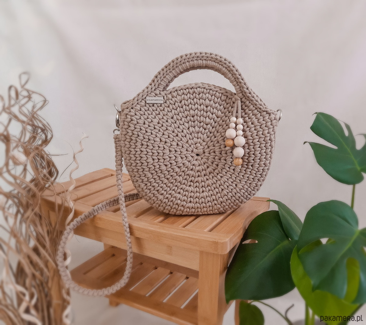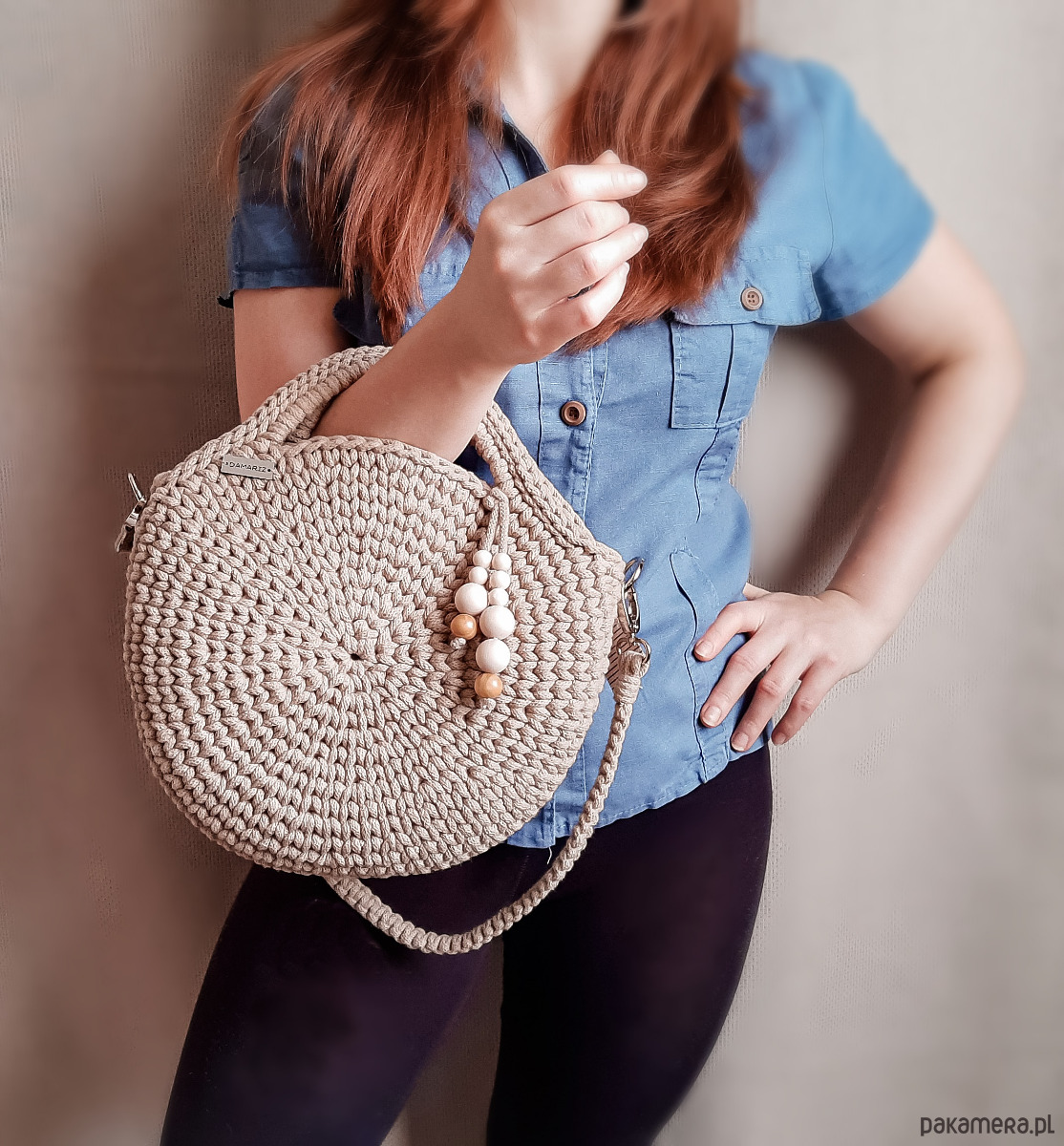 Torebka wykonana jest ręcznie z wysokiej jakości sznurka bawełnianego z rdzeniem przez co świetnie utrzymuje swój kształt. Wewnątrz znajduje się dobrana pod kolor sznurka podszewka z kieszonką oraz karabińczykiem do przypięcia kluczy - dzięki temu zawsze będziesz wiedzieć gdzie są i obejdzie się bez zbędnego szukania.