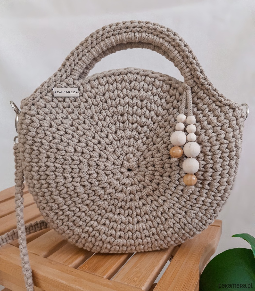 Okrągła torebka ze sznurka - kartonowa (ciepły beż)
