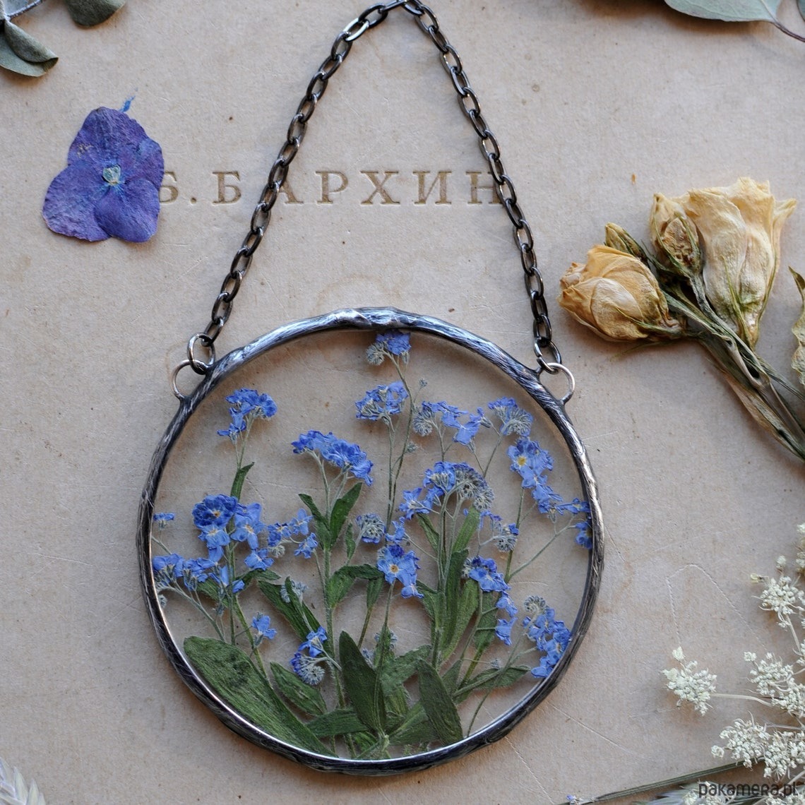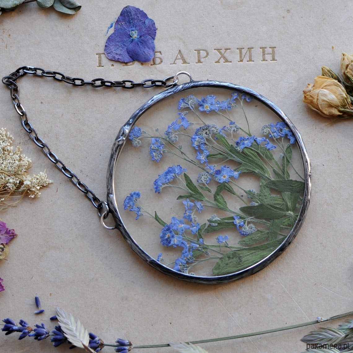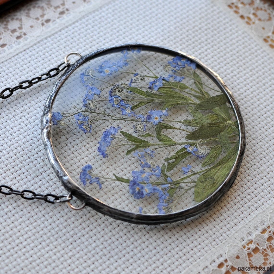 W szkle umieszczone są prawdziwe, suszone kwiaty.