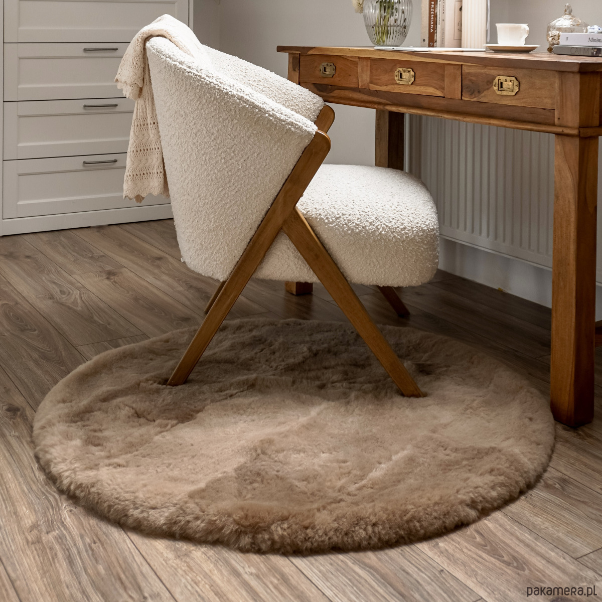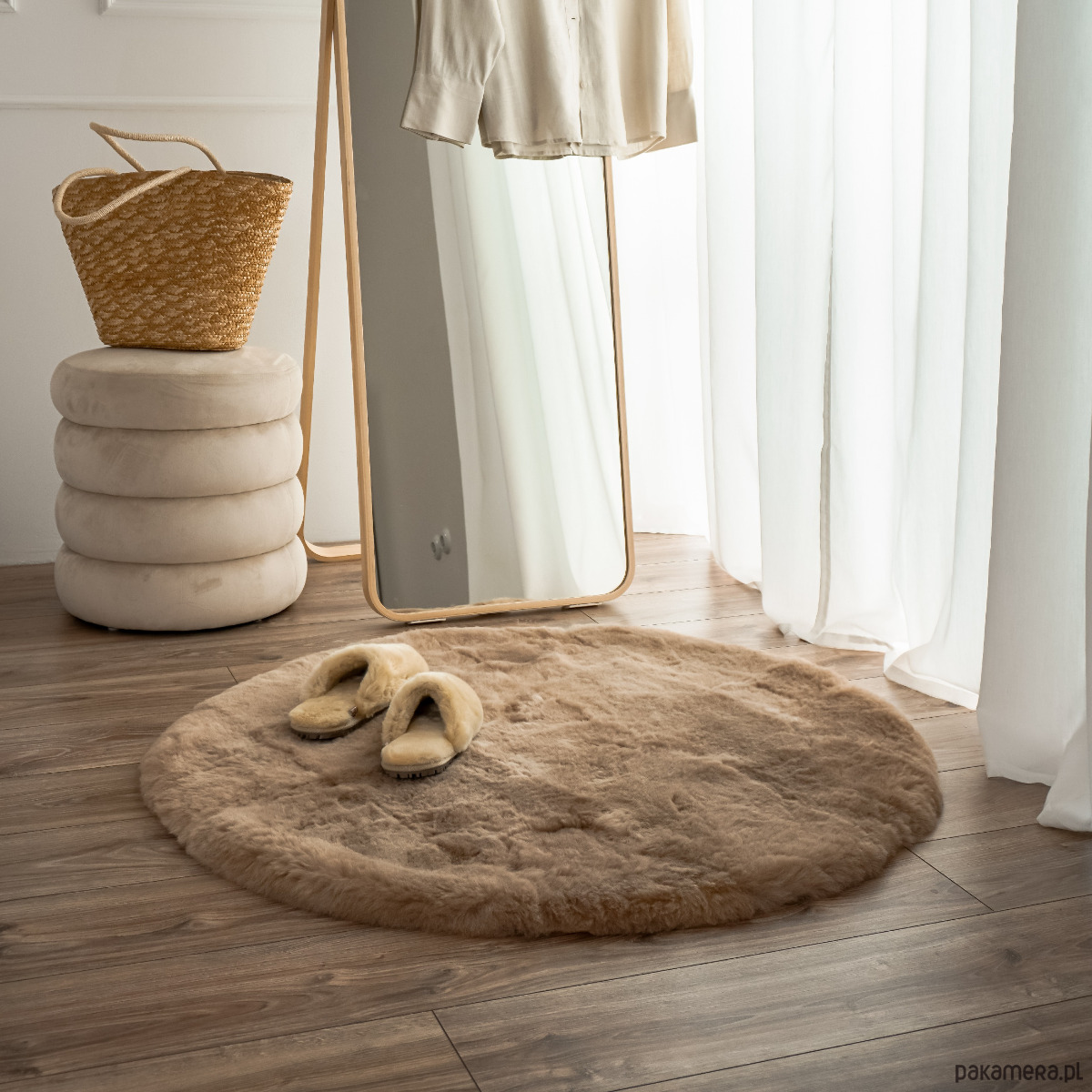 Okrągły dywan mata z owczej skóry 100% naturalny Beżowy