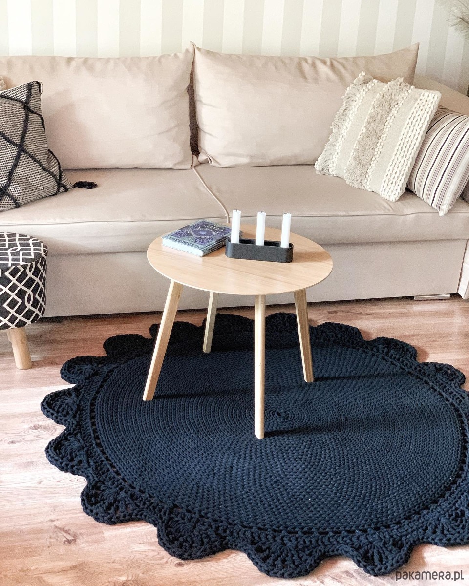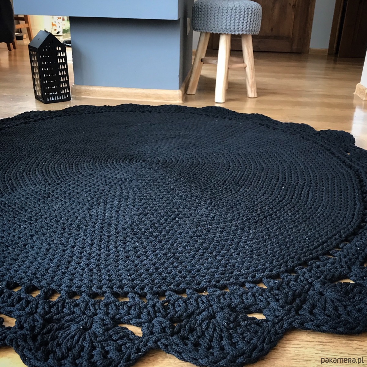 Okrągły dziergany dywan ,czarny dywan 140cm