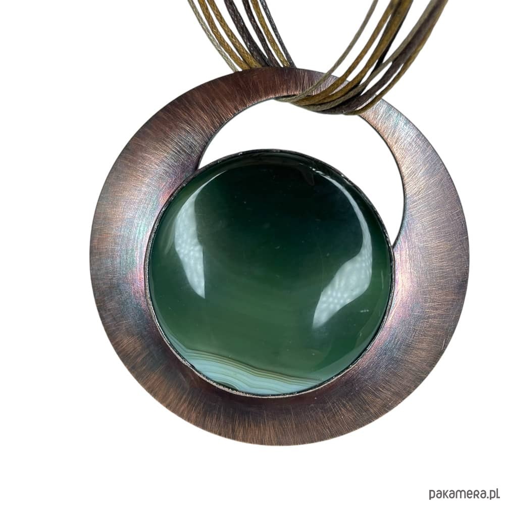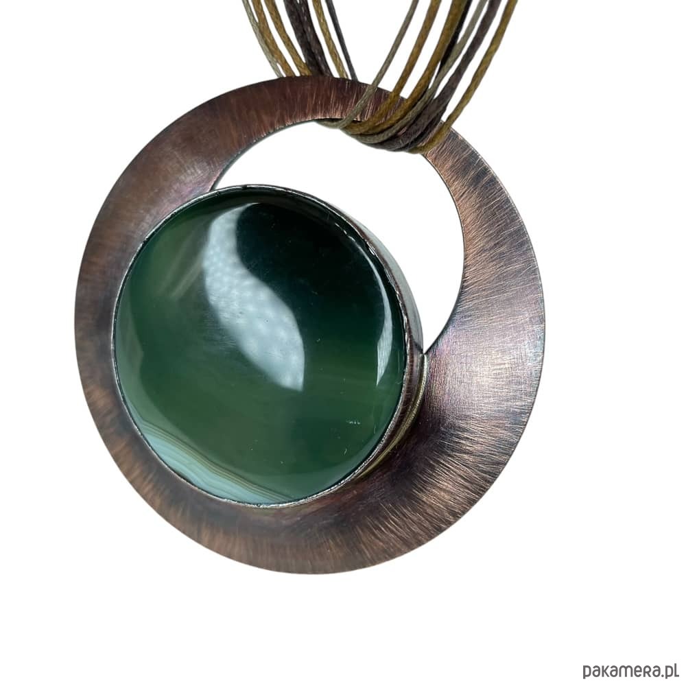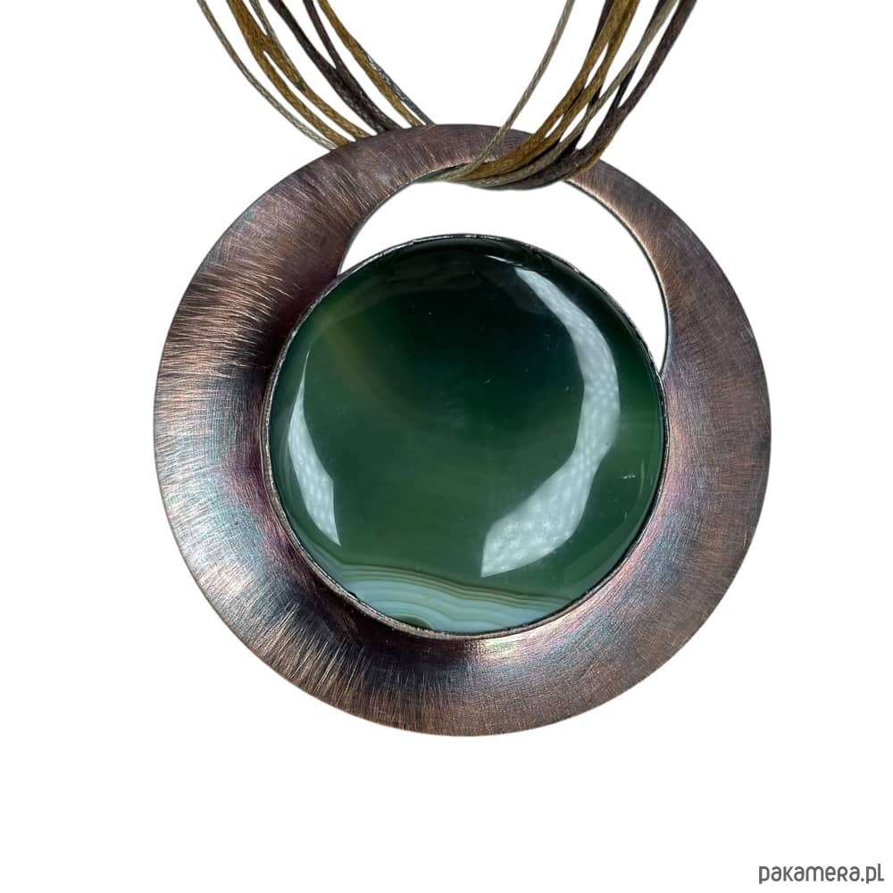 Wisiory z kolekcji Agatowe Krajobrazy zostały wykonane ręcznie z miedzi i agatu o średnicy ok. 40-45 mm. W procesie tworzenia wisiora blacha jest polerowana, matowiona, a następnie malowana oksydą i przecierana, dzięki czemu powstaje niepowtarzalny efekt kolorystyczny. Blacha otaczająca agat jest lekko wypukła oraz zabezpieczona warstwą ochronną. Miedziane koło, którego centralnym elementem jest agat, ma średnicę ok 7 cm. Agat stanowiący główną część wisiora jest wyjątkowy, skrywając w sobie wzory przypominające odległe krajobrazy.