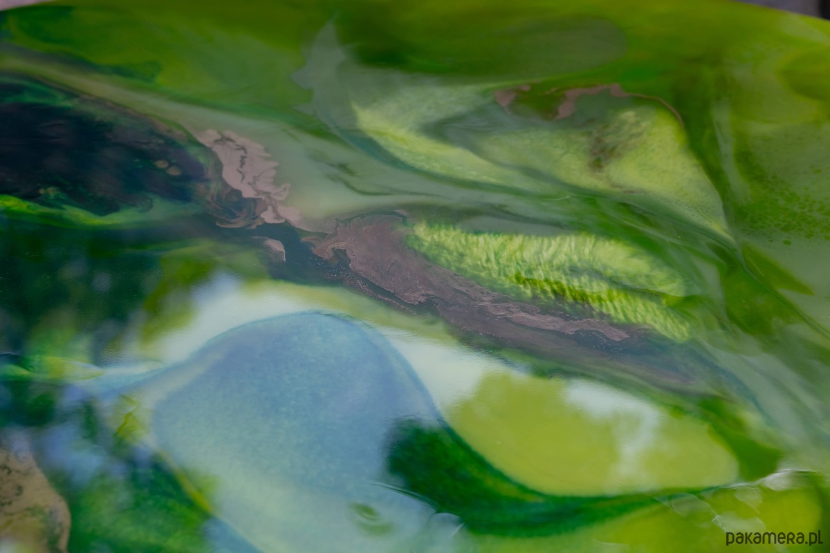 Każda warstwa żywicy dodaje kompozycji głębi i połysku, sprawiając, że obraz zmienia się wraz z kątem padania światła. To dzieło przyciąga wzrok i wprowadza do wnętrza harmonię oraz świeżość natury. Przepięknie odcienie zieleni przeplatają się ze złotymi akcentami, które uwielbiam dodawać do swoich prac by podkreślić światło jakie niosą .