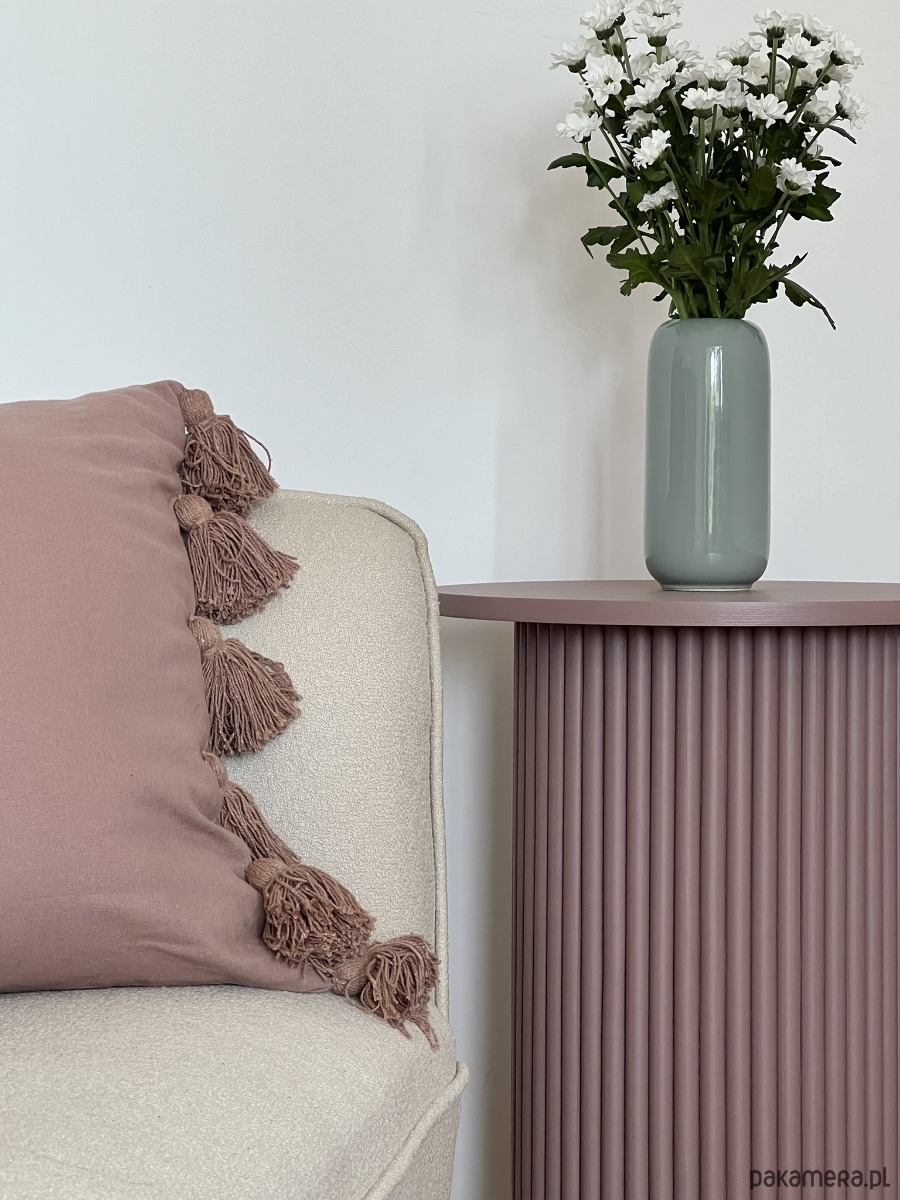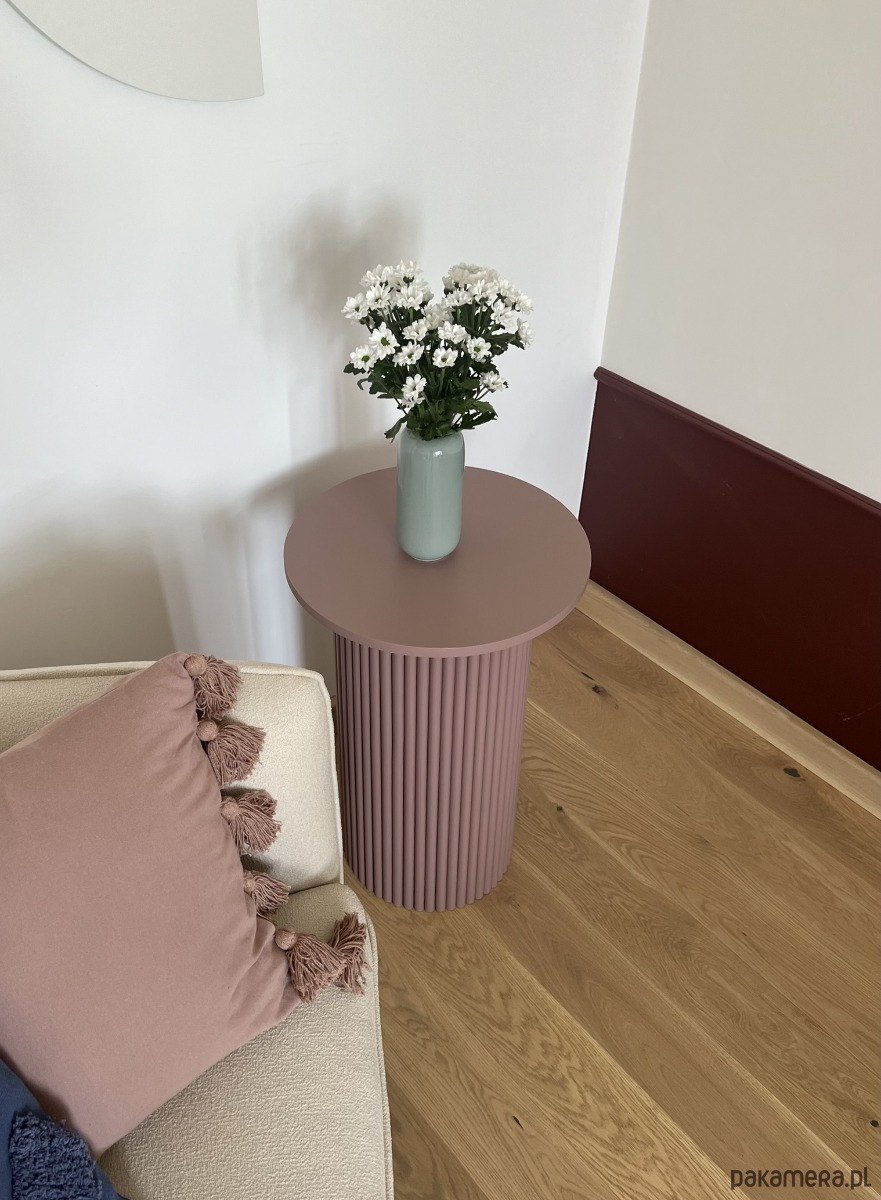 Minimalistyczna i ręcznie wykonana szafka nocna w kolorze mauve - przygaszonym różowo-fioletowym odcieniu, który uzupełni zarówno nowoczesne, jak i tradycyjne wnętrza. Stolik pięknie wkomponuje się również w przestrzeń salonu jako stolik pomocniczy, do postawienia obok sofy.