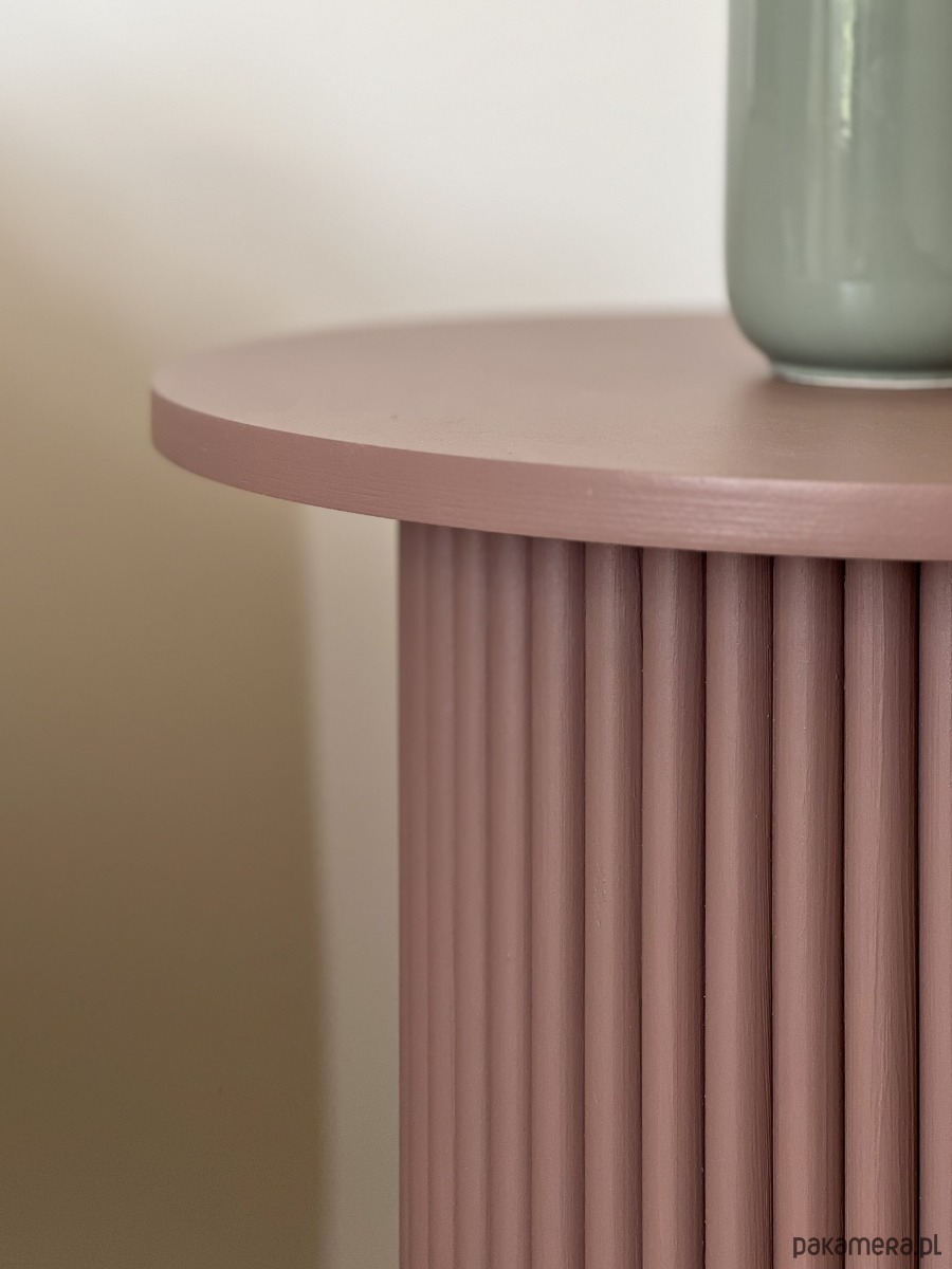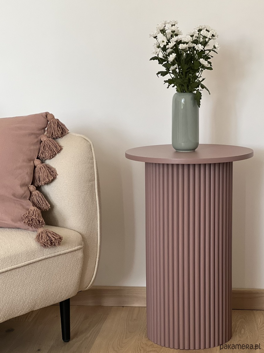Okrągły, ryflowany stolik nocny, pomocniczy w kolorze mauve