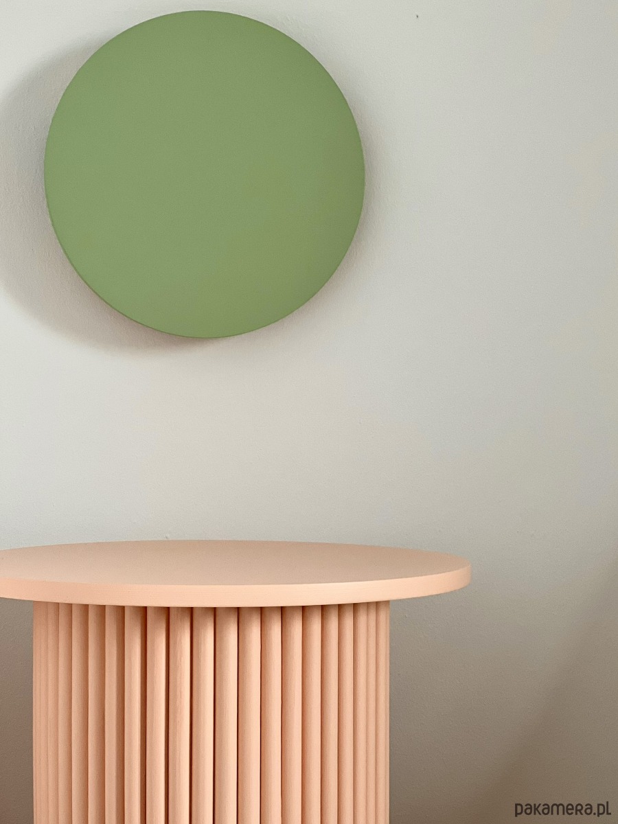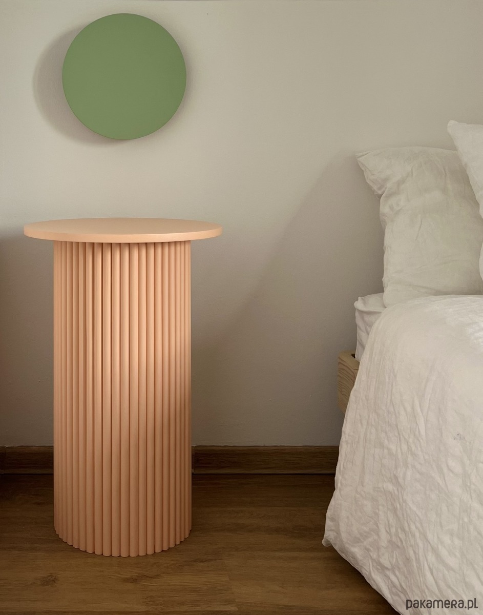 Okrągły, ryflowany stolik nocny, pomocniczy w kolorze peach fuzz
