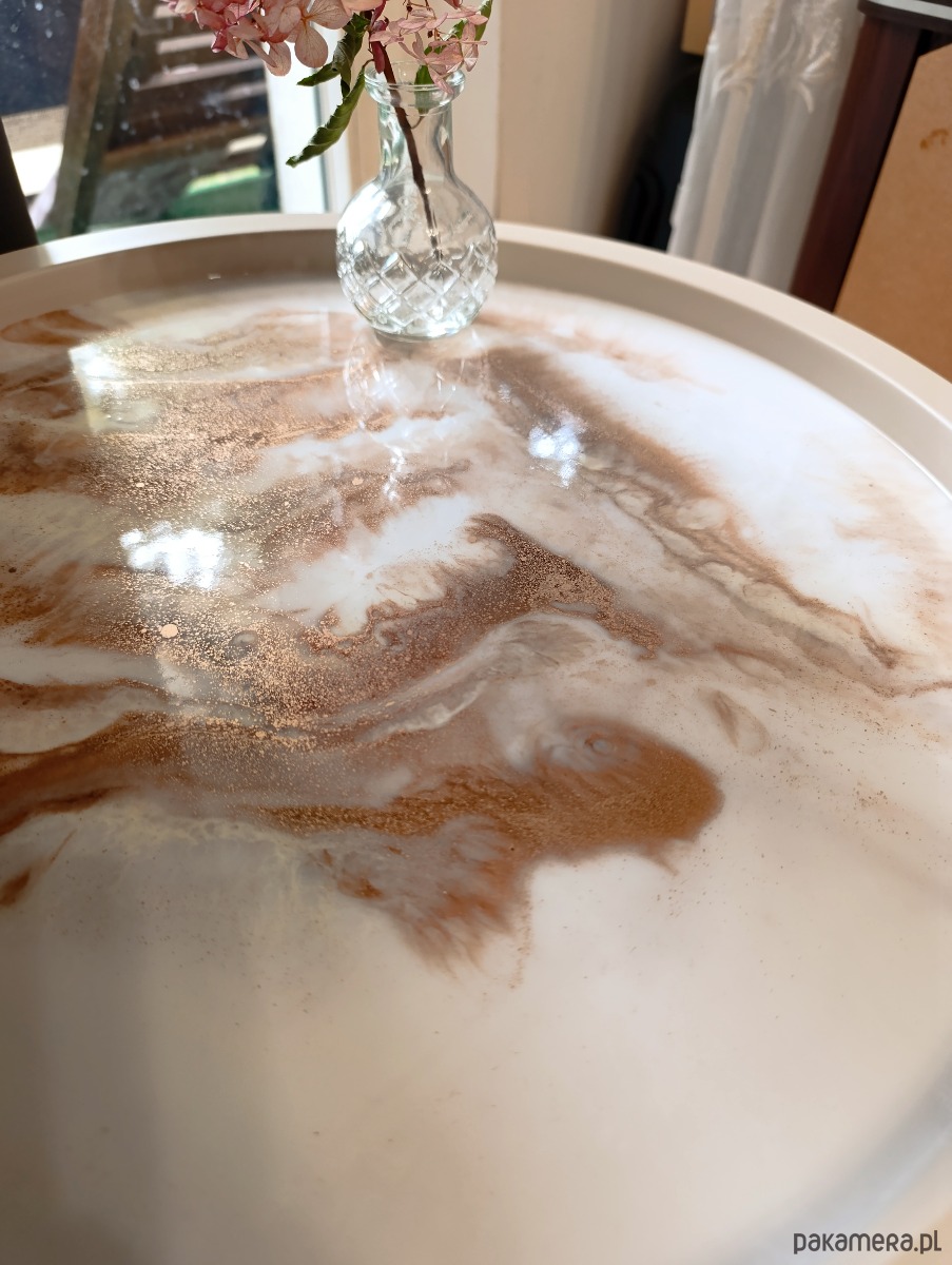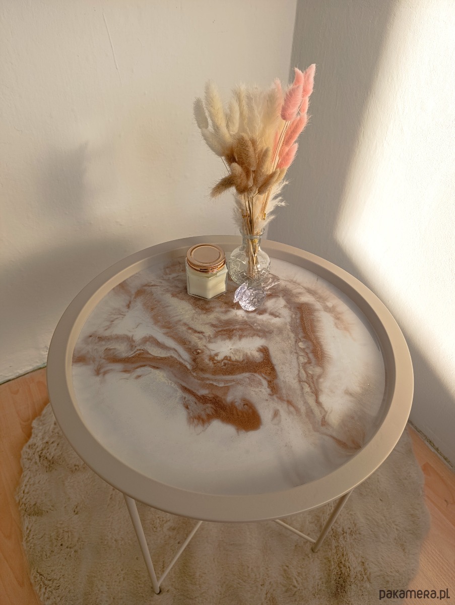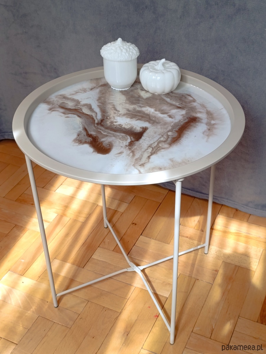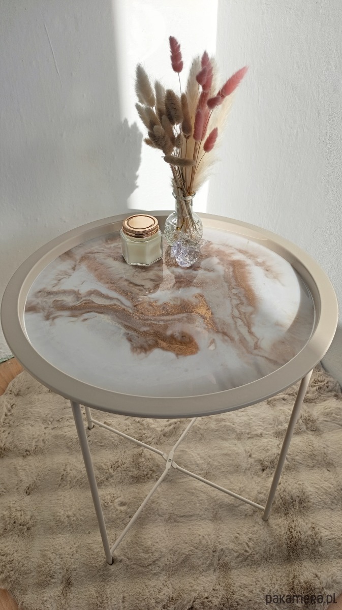 Okrągły stolik kawowy z żywicy epoksydowej efekt marmuru