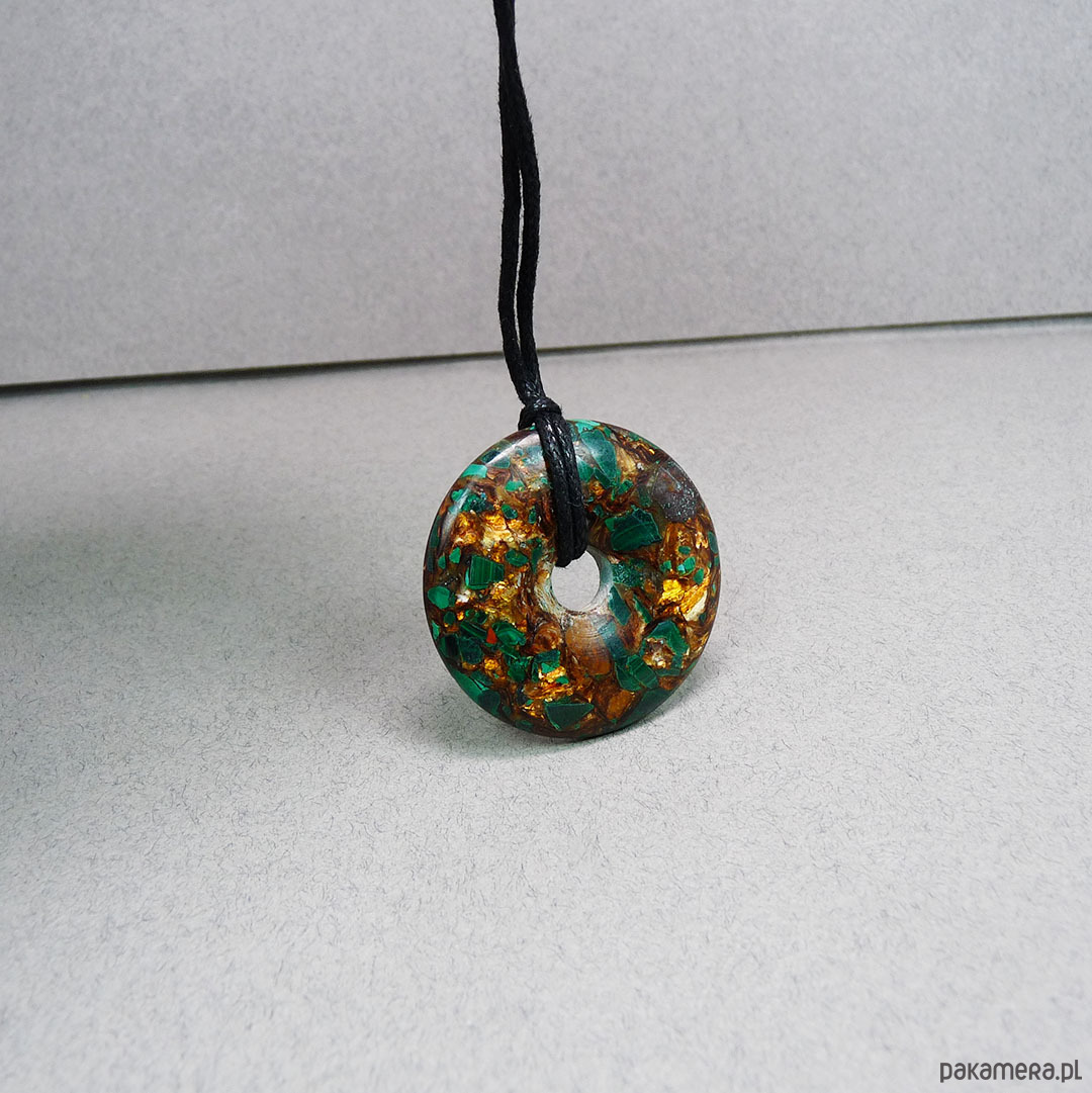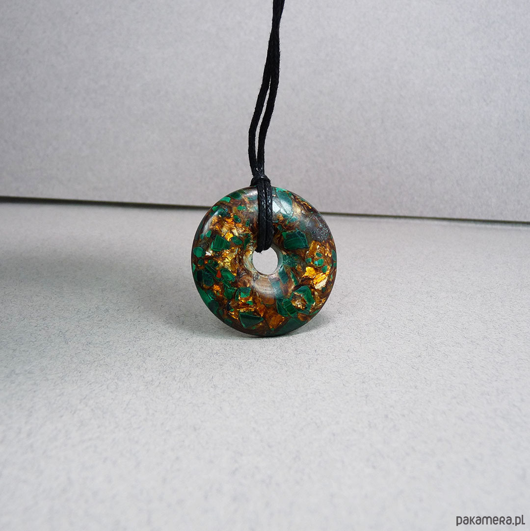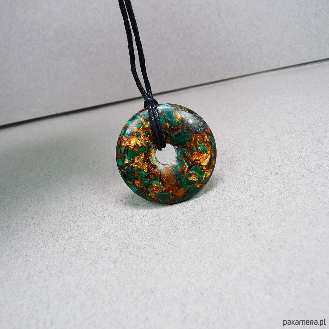 Malachit rekonstruowany z bronzytem (bronzyt w kolorze brązowym i złotym),