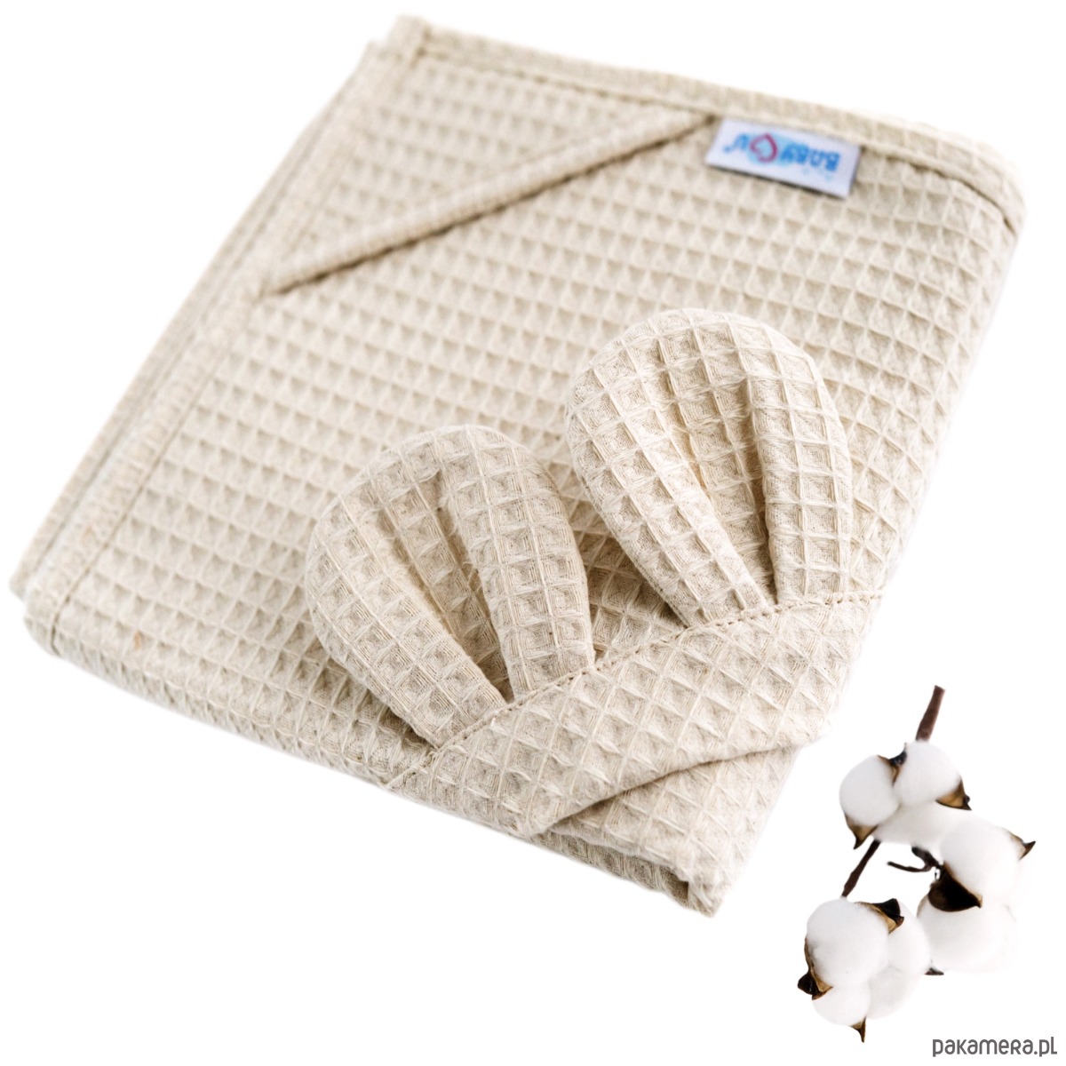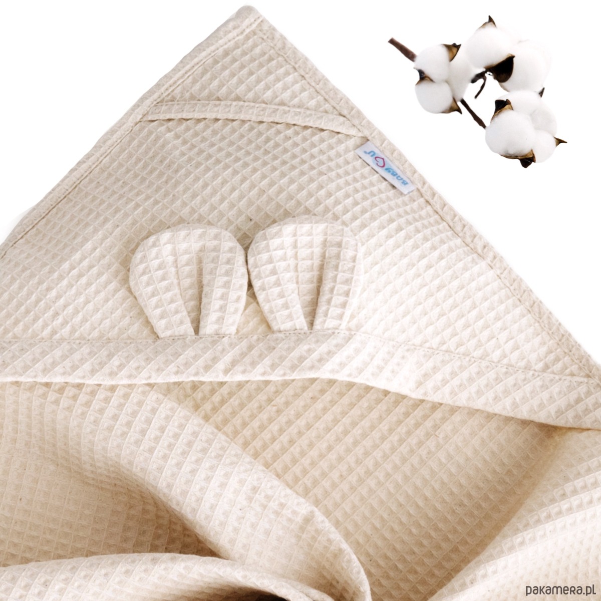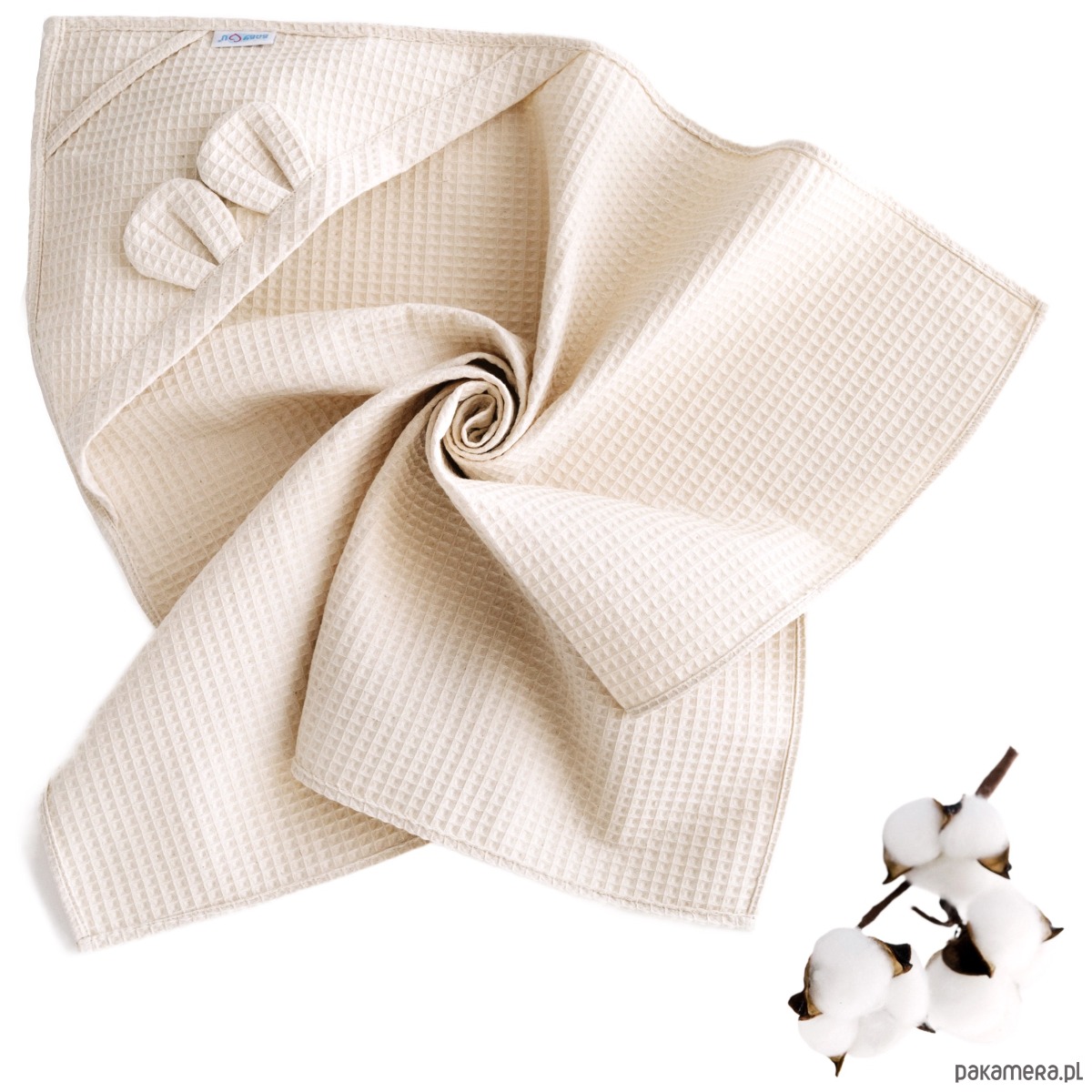 Okrycie Kąpielowe z Kapturkiem Ręcznik Bawełna 75x75cm ECRU od BabyU