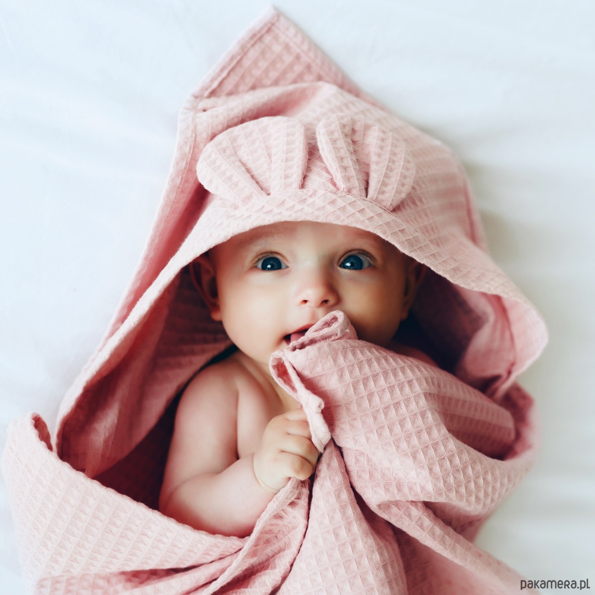 Okrycie Kąpielowe z Kapturkiem Ręcznik Bawełna 75x75cm PINK od BabyU