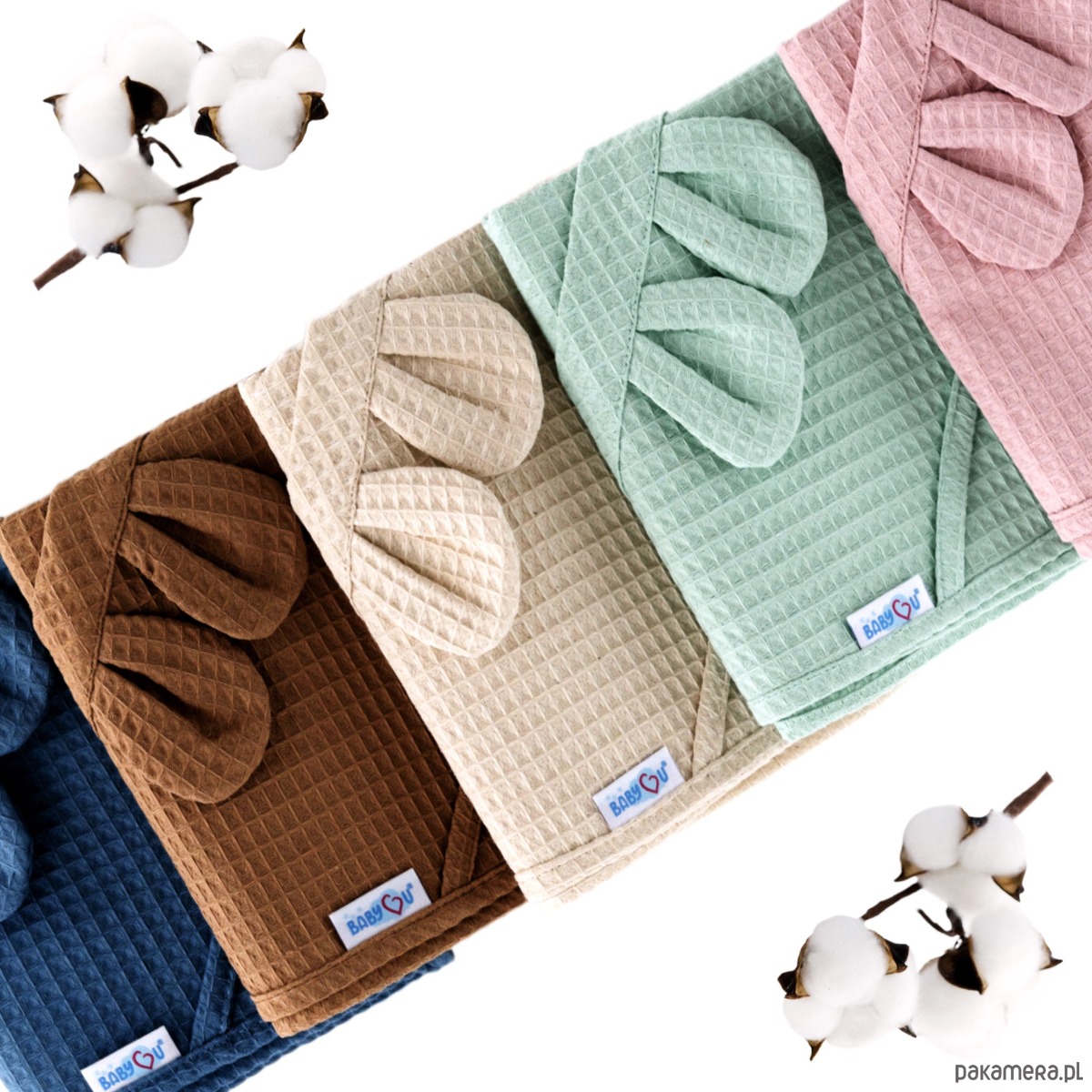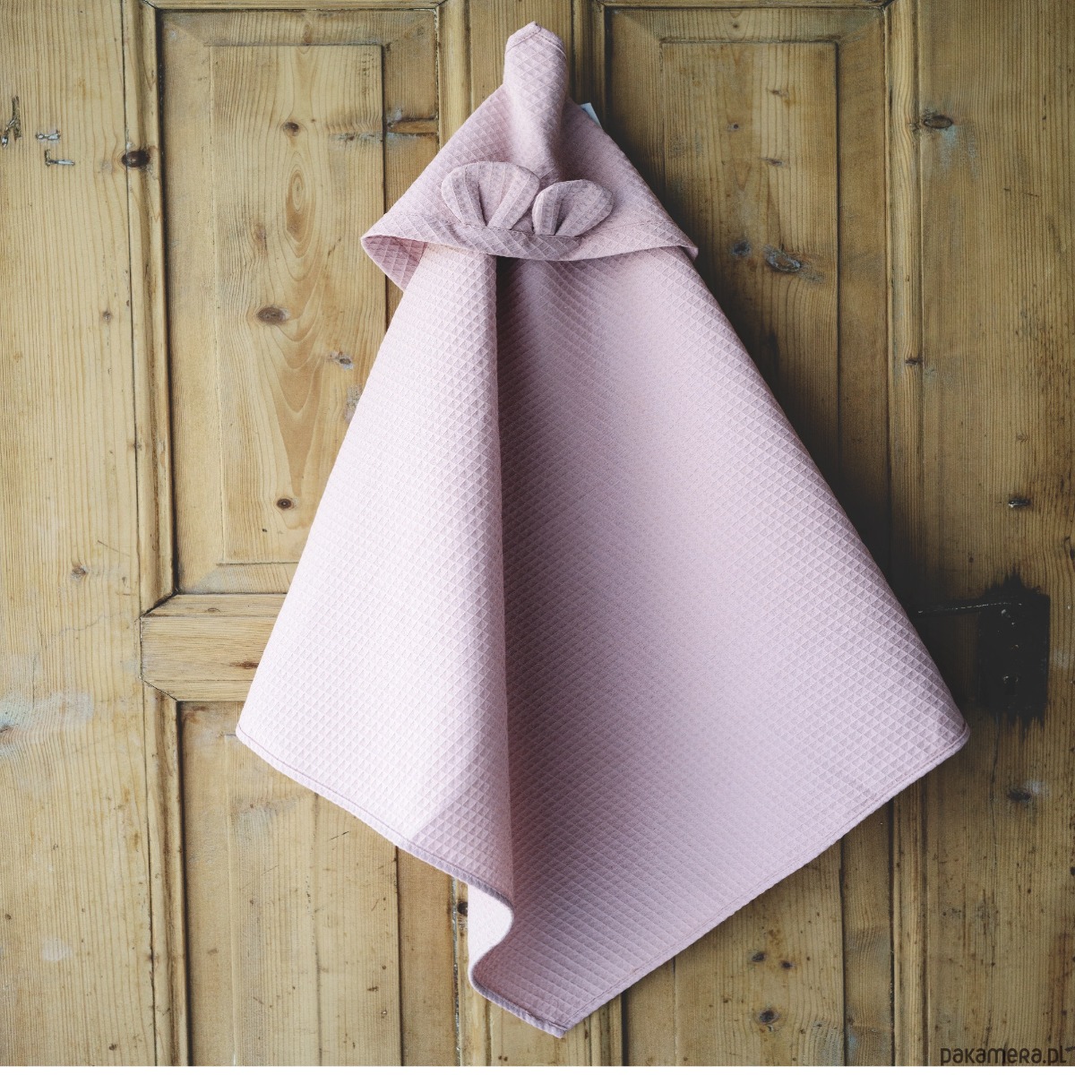 Nasz otulacz to połączenie niezwykłej delikatności i funkcjonalności, które sprawi, że wieczorna pielęgnacja stanie się czystą przyjemnością. Wchłania wodę dużo lepiej niż klasyczne ręczniki frotte, schnie błyskawicznie, zatrzymując ciepło, kiedy najbardziej tego potrzeba. Jest lekkie jak chmurka i na tyle kompaktowe, że bez trudu zmieści się nawet do małego plecaka. Kapturek zadba o mokrą główkę, a dyskretnie ukryty wieszaczek pomoże estetycznie przechować ręczniczek w Waszej łazience.