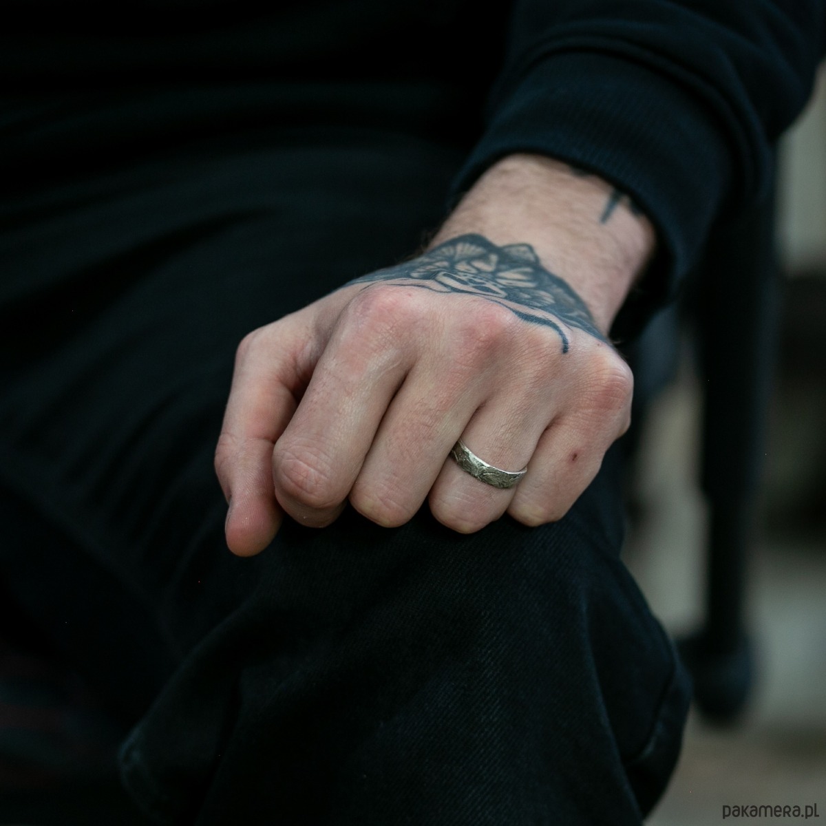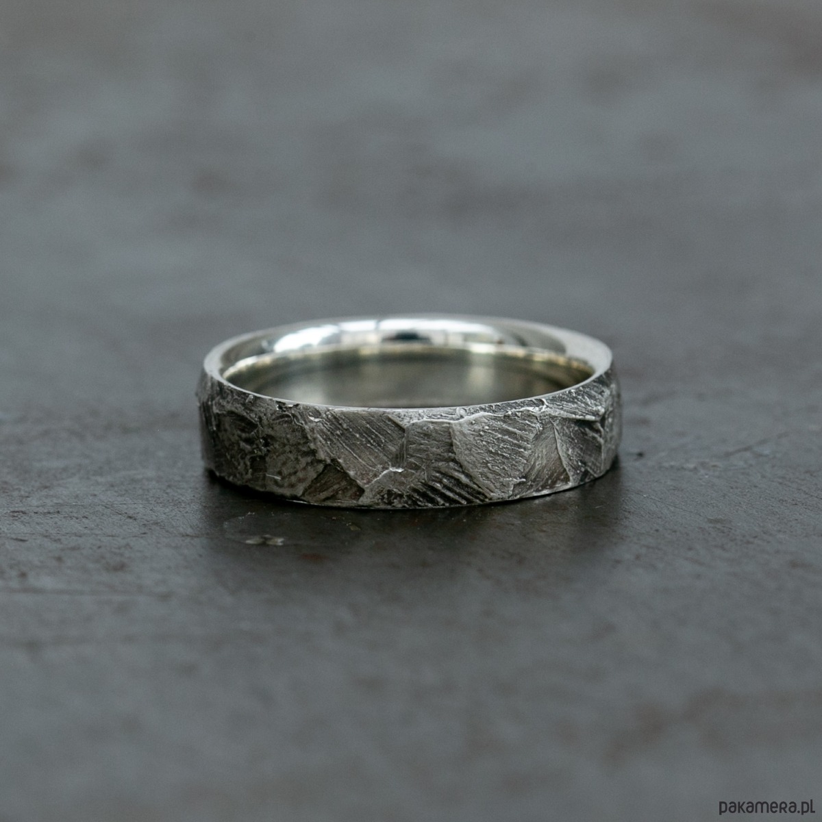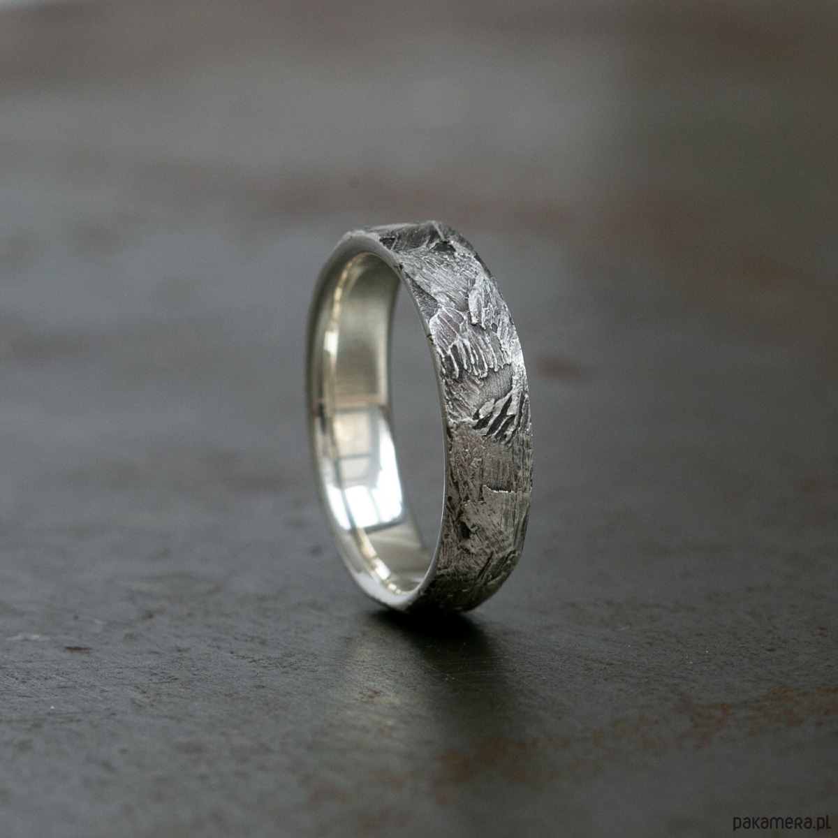 Oryginalna oksydowana srebrna obrączka z surową teksturą