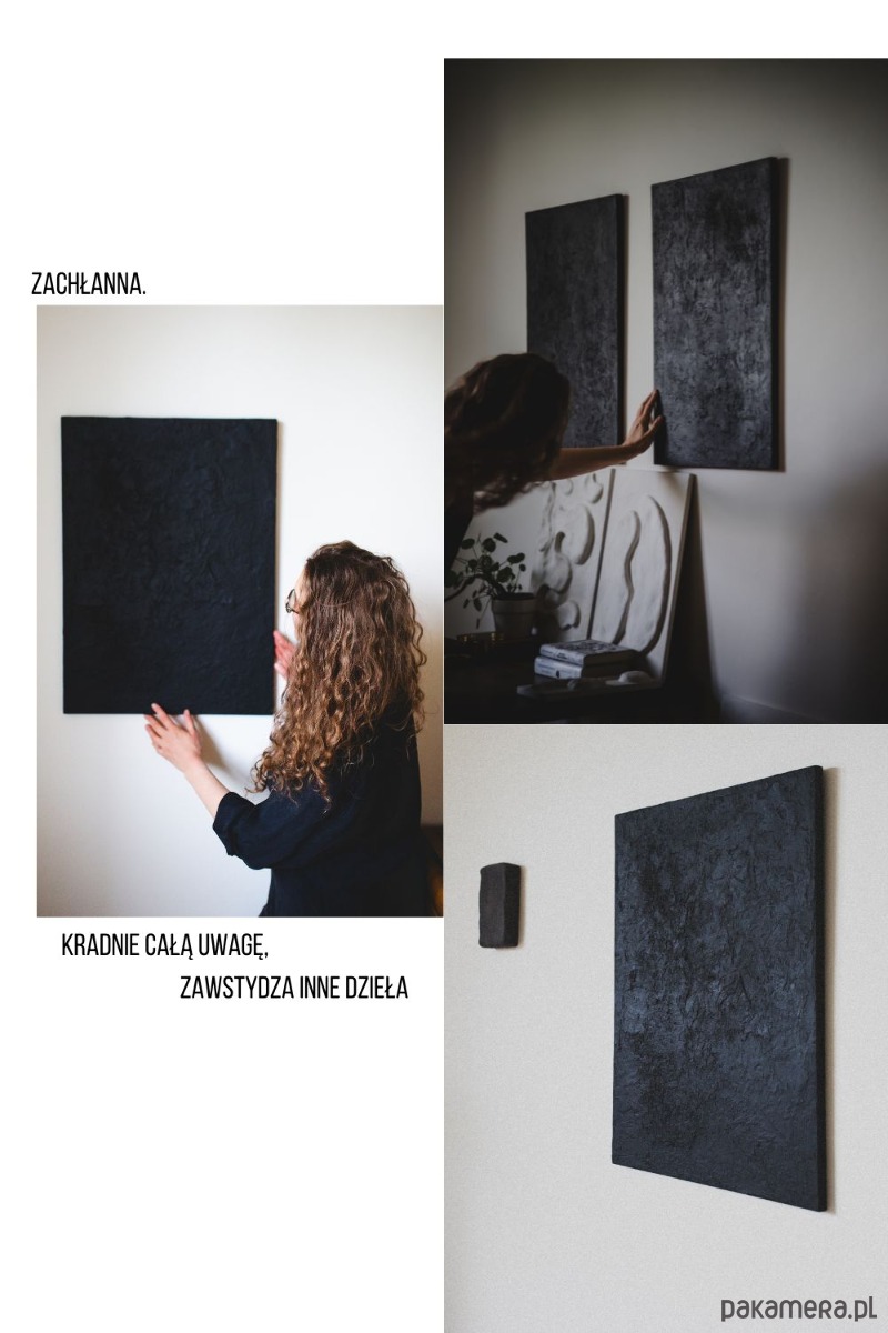 Oksza jest wyrazistym obrazem strukturalnym, który pasuje do przeróżnych wnętrz: wabi sabi, japandi, scandi, minimalistycznych, industrialnych, nowoczesnych, ale i gotyckich, i boho też. Wszędzie jej dobrze.