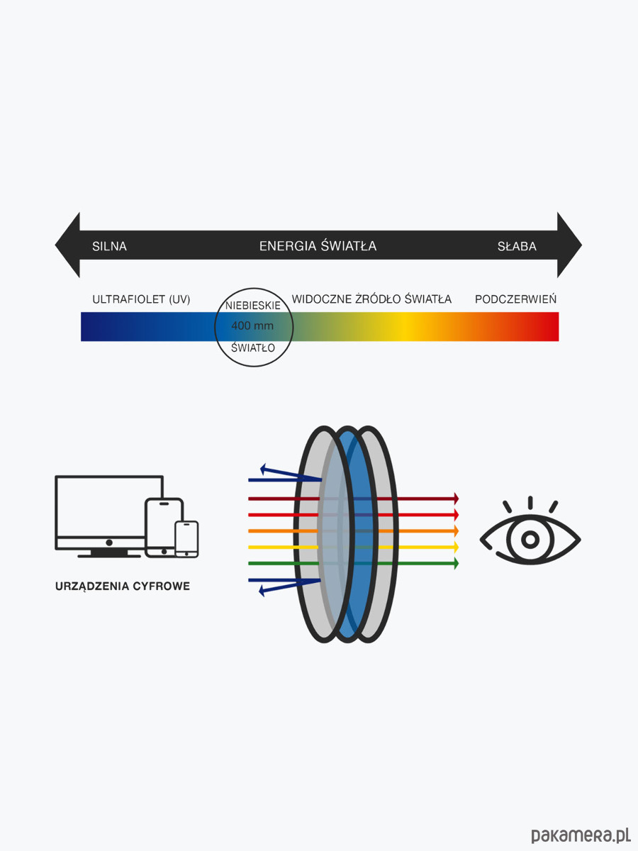 • Filtr Blue Light i UV - blokuje niebieskie światło emitowane przez komputer, tablet, telefon i inne urządzenia chroniąc Twój wzrok.